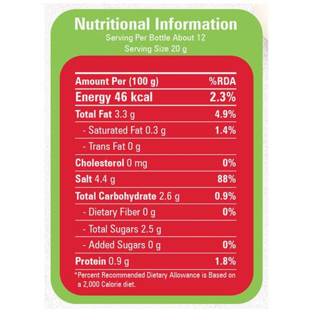 Water, White Distilled Vinegar, Onion (11%), Salt, Lemon (4%), Vegetable Oil (Sunflower Seeds), Serrano Chilli, Spices (including African Bird’s Eye Chilli), Garlic, Stabilisers (Xanthan Gum, Propylene Glycol Alginate), Antioxidant (Calcium Disodium EDTA).