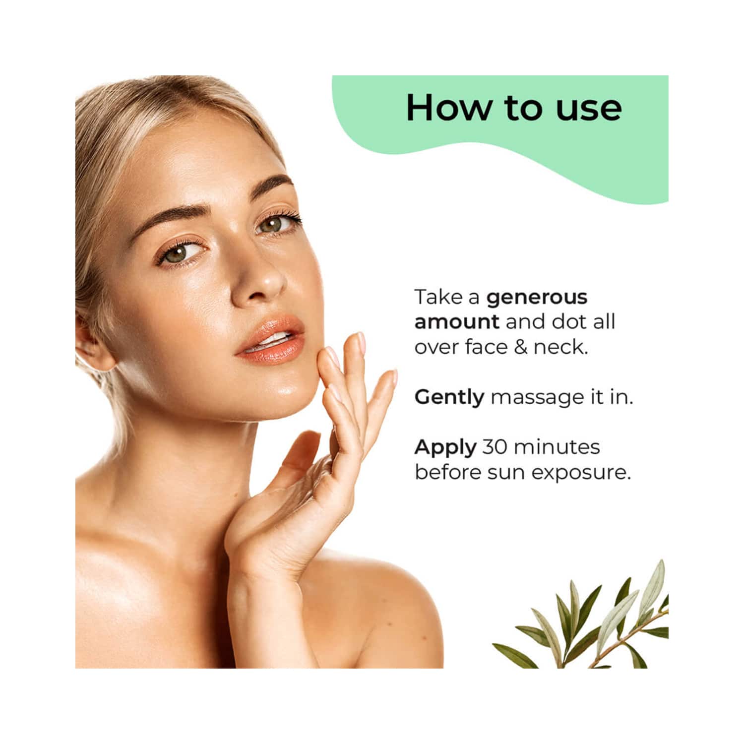 How to Use:Take an adequate amount of sunscreen on your palm. Dab it over your face and neck and massage it in a circular motion until absorbed completely. If you apply makeup later, wait five minutes after applying the cream for better absorption.