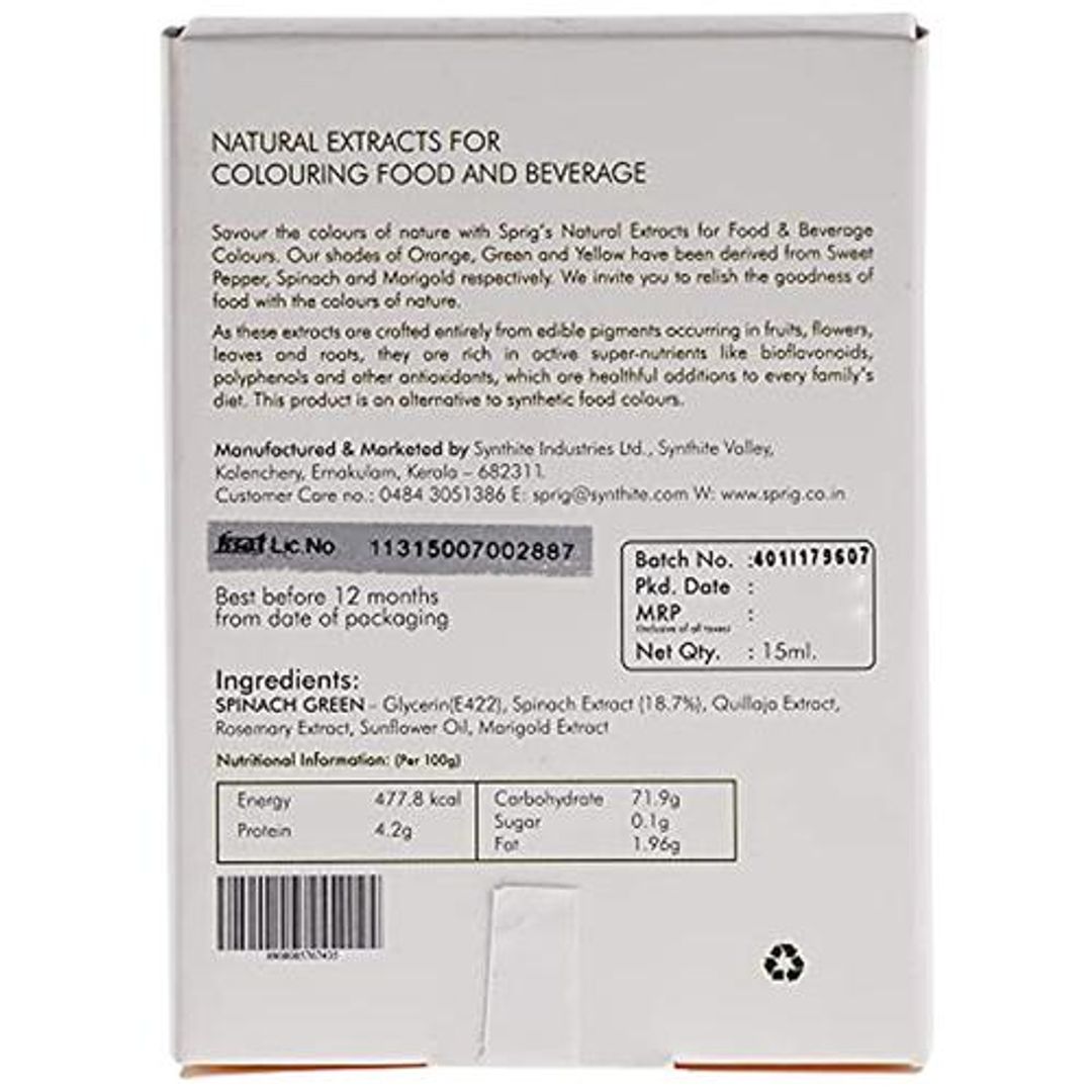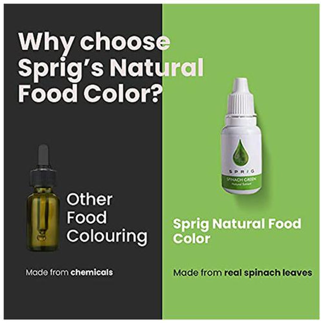 Sprig Natural Extracts for Colouring Food and Beverage is a plant-based natural food colouring. It is a substance that imparts colour when it is added to food or drink. It can be used in various dishes and desserts. These colourings are a must-have for every kitchen as they are fit to be used for preparing scrumptious dishes at home or they can also be used by professional chefs for gourmet cooking. It is used in food like in cake, ice cream etc.