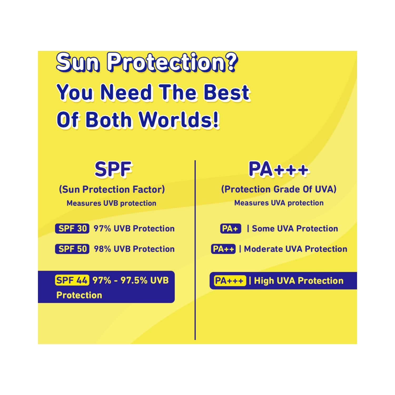 Key Features & Benefits:Infused with Aloe Vera for skin hydration and soothingContains SPF 44 PA+++ for powerful protection against UVA and UVB raysNon-greasy texture promotes a comfortable, non-oily feel, perfect for all-day wearProvides a cool and refreshing sensation on your skin