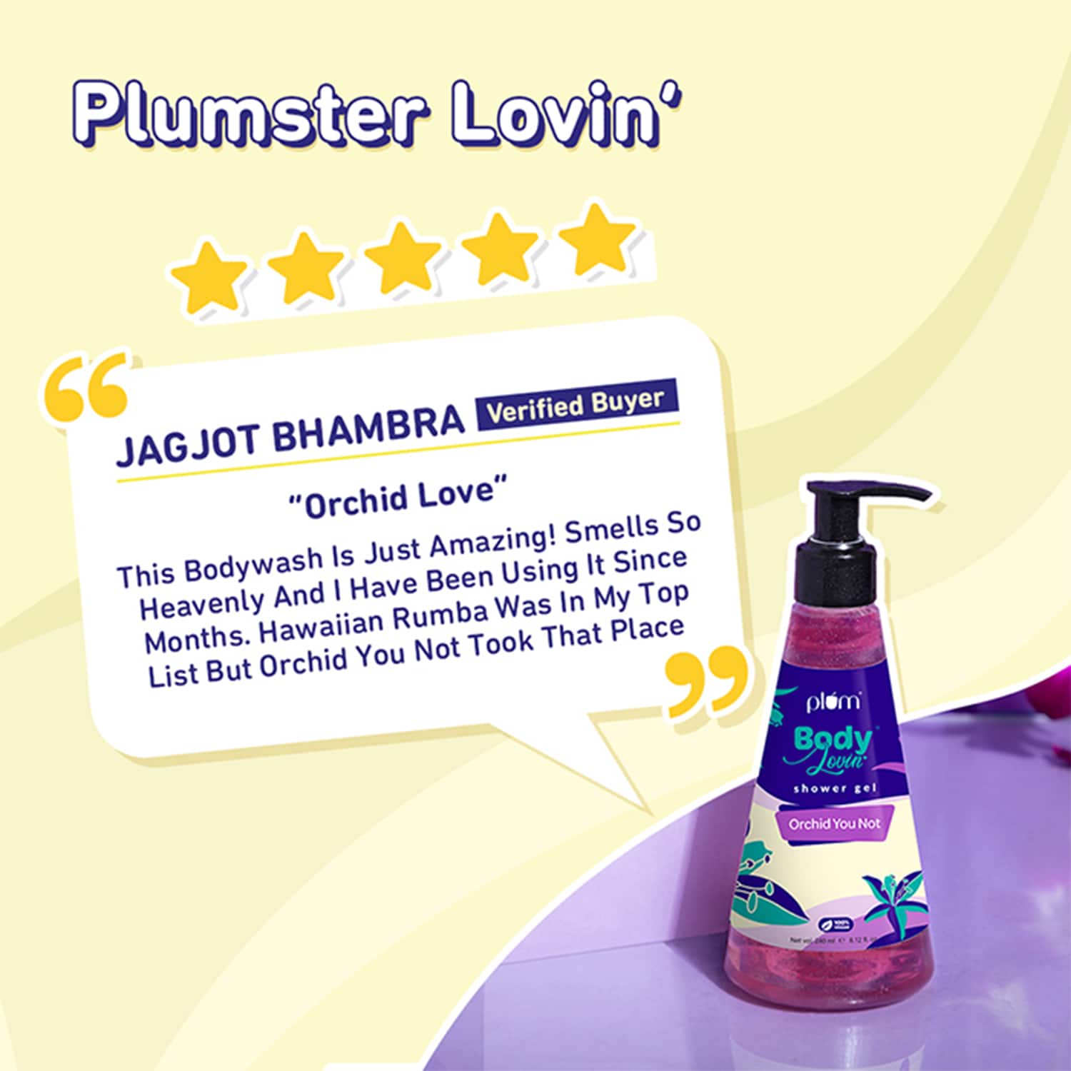 Recreate the serenity of a stroll through a blooming orchard with the Plum Bodylovin' Orchid-You-Not Shower Gel 240 ml. Enriched with nourishing aloe vera, this gentle yet effective shower gel cleanses without compromising your skin's natural moisture, leaving it irresistibly supple and smooth. Delight in the enduring fragrance of fresh orchids, knowing that you're treating your skin to a 100% vegan, SLS-free formula free from animal ingredients.Key Features & Benefits:Formulated with aloe vera for gentle yet effective cleansingLeaves skin feeling supple, smooth, and moisturizedInfused with a long-lasting floral fragrance that lingers delicately on your skin100% vegan formula, free from SLS, harmful chemicals, and animal ingredientsKey Ingredients:Aloe vera extract: Hydrates and nourishes the skinAll Ingredients:Aqua, Sodium Laureth Sulfate, Cocamidopropyl Betaine, Glycerin, Fragrance, Sodium Lactate, Cymbidium Grandiflorum (Orchid) Flower Extract, Aloe Barbadensis Extract, Olea Europaea (Olive) Extract, Disodium Edta, Panthenol, Benzophenone-4, Phenoxyethanol, Ethylhexylglycerin, Sodium Chloride, Sodium Hydroxide, Ci 61585, Ci 16255How to Use:Dispense the desired amount of shower gel on the palm of your hand or a loofah and lather it onto damp skin using gentle circular motions. Rinse with lukewarm water and pat dry to reveal clean and refreshed skin.About the Brand:Established in 2013, Plum has emerged as India's pioneering 100% vegan beauty brand. Dedicated to cruelty-free practices, the brand's skincare, makeup, haircare, and body care offerings blend natural ingredients with science-backed actives, embodying the ethos of 'good science' for truly tangible results.Check out more Plum Body Wash & Shower Gel options here, or browse through tokocart's full range of Body Wash & Shower Gel from top global brands.You can also explore other products from the world of Plum here on tokocart.