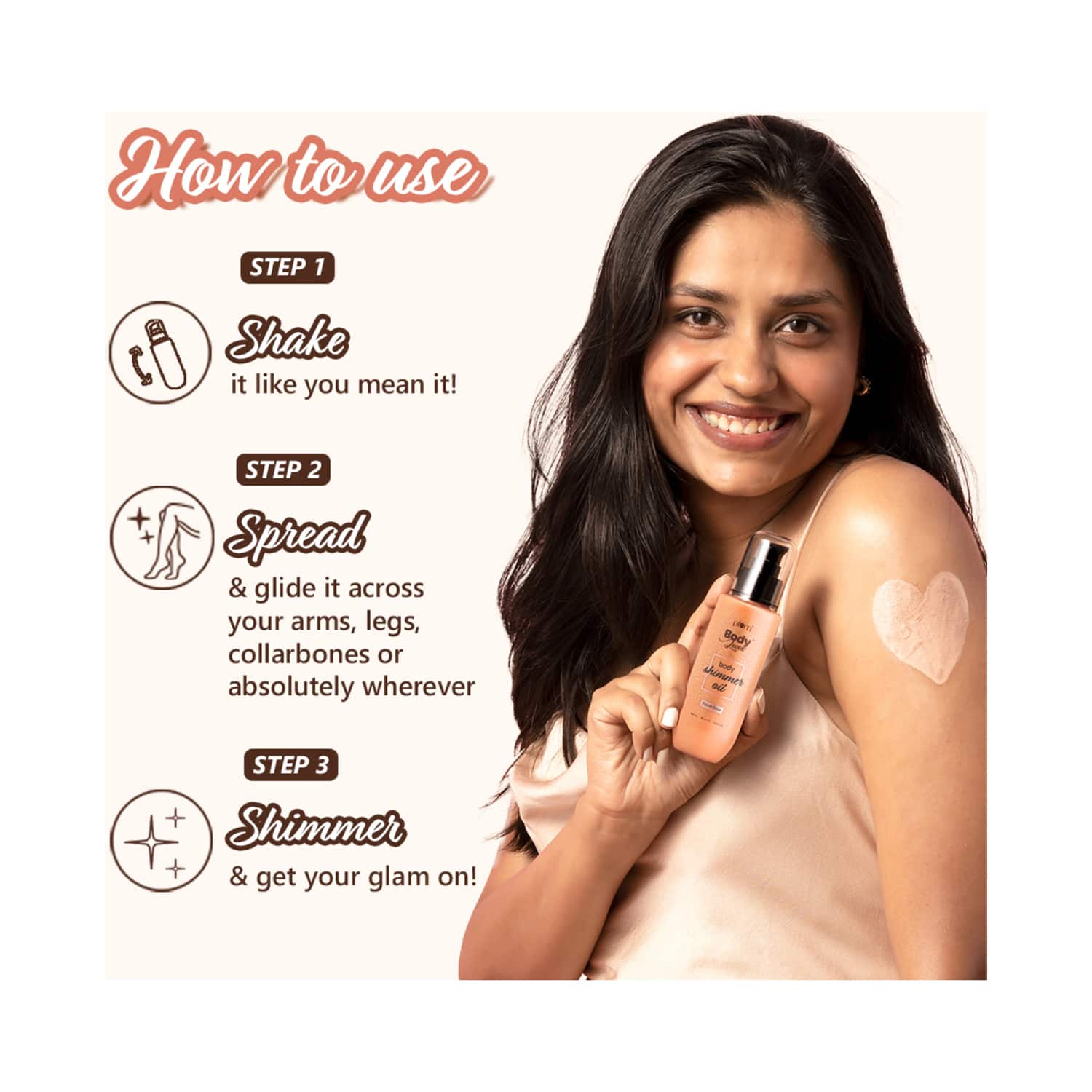 Say hello to a natural-looking shine with the Plum Bodylovin Peach Glow Body Shimmer Oil (90ml). This lightweight body shimmer oil is made of 5 natural oils to nourish your skin without feeling greasy. It offers high shine and a tinted texture, giving your skin a dewy look. Plus, the moisturizing property of this Plum liquid body highlighter keeps your skin hydrated all day, while the chemical-free formulation makes it safe for all skin types.