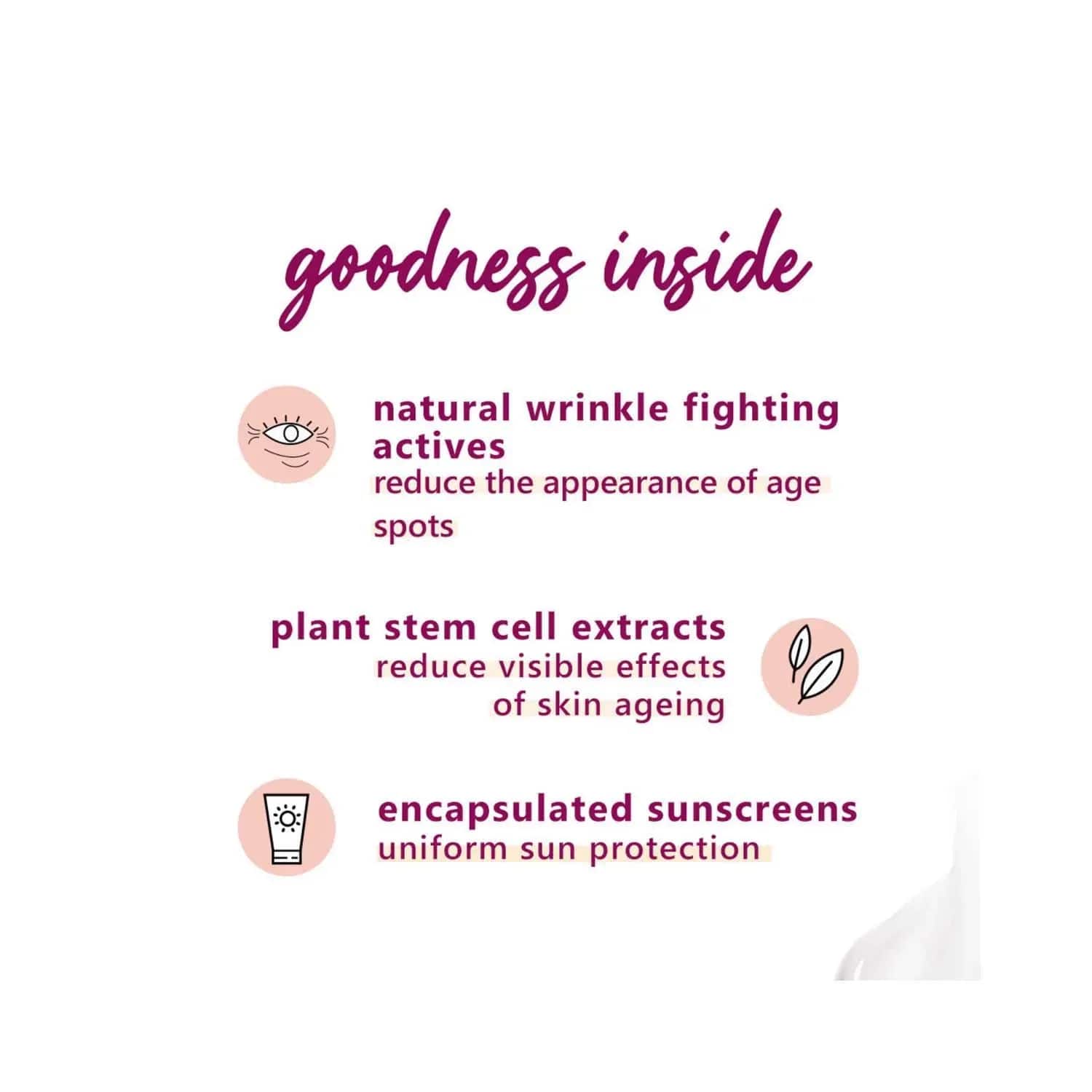 Fight and reverse sun damage with the Plum Bright Years All-Day Defence Cream - (50ml). This natural sunscreen lotion gives you the perfect shield against harmful UV rays while treating sun damage, skin ageing, and uneven skin tone. The hydrating sunscreen is the ultimate multitasker that's most suited for dry to combination skin types.Key Features & Benefits:Shields from UV rays to protect against sun damage and doesn't leave white patchesSun defence cream has aloe vera to soothe the skinLicorice extract helps brighten skin while reducing dark spotsNatural antioxidants fight and repair free radical damageCreamy sunscreen hydrates and suits dry to combination skin types100% vegan, cruelty-free, and paraben-free for reliable useKey Ingredients:Aloe vera: Hydrates and soothes the skinOlive oil: Moisturises the skinLicorice: Brightens skin and fades dark spotsAmino acids: Strengthens skin and repairs damageHow to Use:Apply the sunscreen as dots on your face, neck, and arms. Gently massage it with your fingertips in small upward-outward circles. Wait for at least 10 minutes before you step out in the sun. Reapply every 3-4 hours.All Ingredients:Aqua, Ethylhexyl Methoxycinnamate, Butyl Methoxydibenzoylmethane, Benzophenone -3, Aloe Barbadensis (Aloe Vera) Leaf Juice, Caprylic/ Capric Triglyceride, Betaine, Helianthus Annuus (Sunflower) Seed Oil, Propanediol, Cetearyl Olivate, Sorbitan Olivate, Titanium Dioxide, Glycerin, Cetearyl Alcohol, Glyceryl Monostearate, Phospholipids,1,3-Butylene Glycol, Hydrolyzed Rice Protein, Hydrolyzed Pea Protein, Argania Spinosa (Argan) Kernel Oil, Glycine, Proline, Hydrolyzed Hyaluronic Acid, Malus Domestica (Apple) Fruit Cell Culture Extract, Glycyrrhiza Glabra (Licorice) Root Extract, Tocopheryl Acetate, Phenoxyethanol, Xanthan Gum, Sodium Benzoate, Ethylhexylglycerin, Fragrance, Glycerin, Sodium Gluconate, Ci 16255About the Brand:Founded in 2014, Plum offers a wide range of products for your skincare routine, from facewashes for different skin types to moisturisers, body mists, shower gels, and more. The brand upholds the core values of customer delight, respect, sustainability, and transparency. Plum believes that people look their best in the skin they were born, and hence is against the concept of fairness creams. All the products are formulated to help protect, repair, and nourish the skin and hair using natural ingredients that are in sync with science.