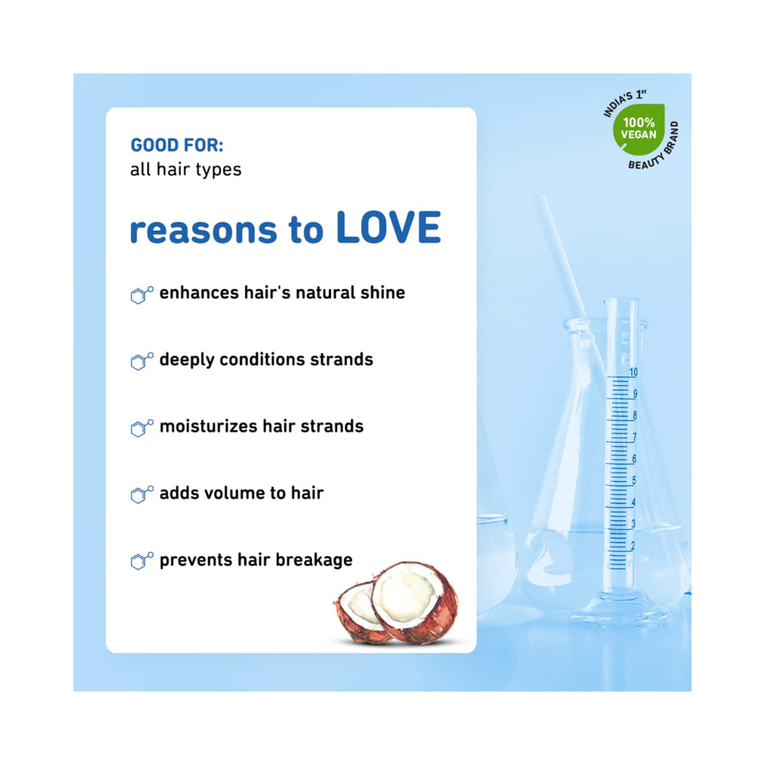 Key Features & Benefits:Enriched with coconut milk and peptides to nourish and hydrate hair strands deeplyConditions the hair and restores bounce, shine, and volumeStrengthens the hair strands to prevent breakageCruelty-free and vegan formulation for safe and guilt-free use