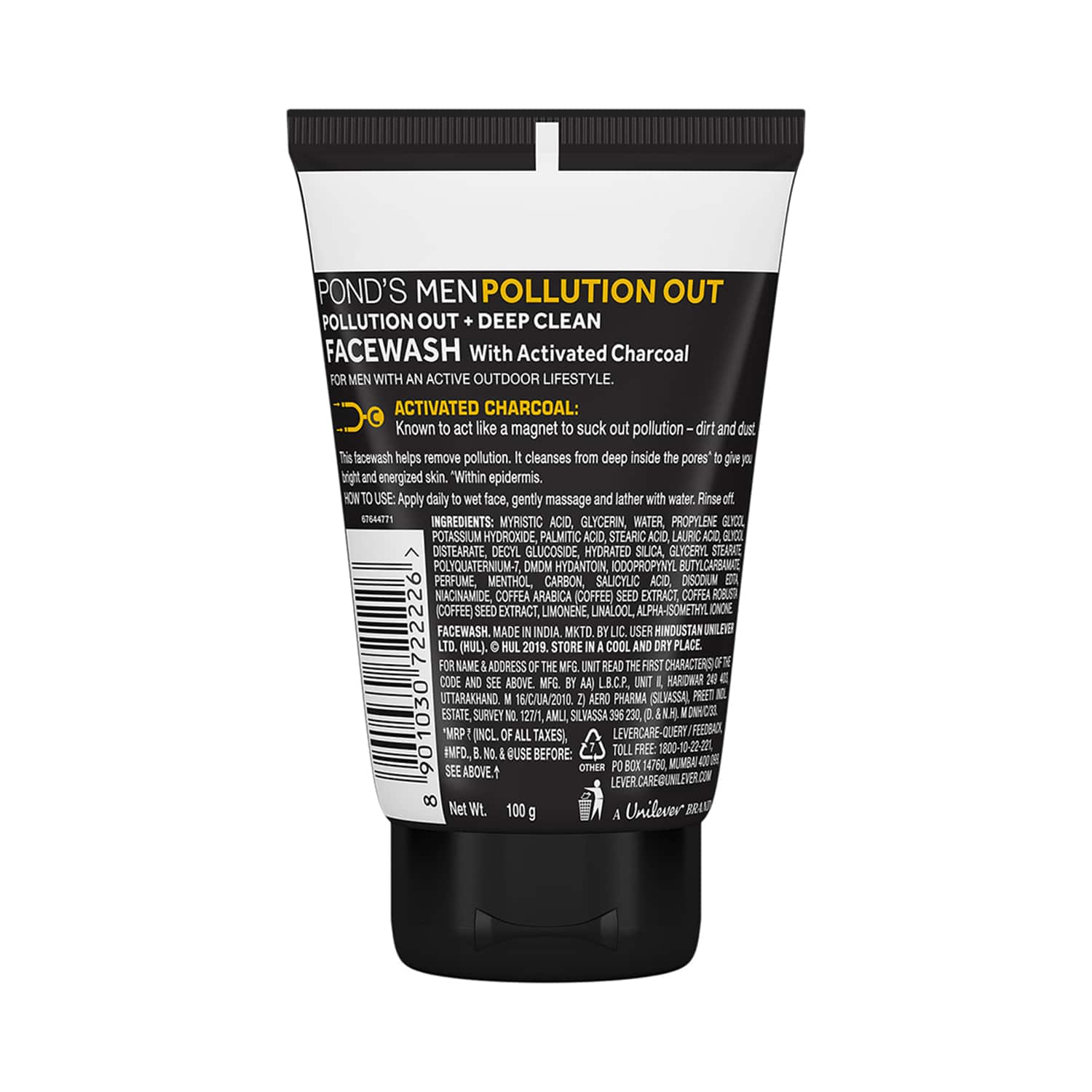 Deeply cleanse your skin with the Pond's Men Pollution Out Activated Charcoal Deep Clean Facewash - (100g) to fight the ill effects of pollution. This pollution-control facewash helps extract dirt and impurities to reveal a natural glow. With a deep clean technology, this activated charcoal facewash unclogs pores and aids in the removal of pollutants for healthier skin.Key Features & Benefits:Charcoal facewash extracts maximum impuritiesHelps control the ill effects of pollutionUnclogs pores to prevent breakoutsDeeply cleanses for healthier skinKey Ingredients:Charcoal: Helps extract dirt and impuritiesCoffee Arabica: Reduces spotsMenthol: Provides a refreshing feelHow to Use:Apply some facewash on a wet face. Create a rich lather and gently massage the face. Rinse thoroughly with water and pat dry.All Ingredients:Activated Charcoal, Coffea Arabica, MentholAbout the Brand:Invented in 1846 by American pharmacist Theron T. Pond as a cream to repair skin from small cuts and other ailments, Pond's has bloomed to become the world's leading skincare brand. Over the years, Pond's has worked to deliver beauty transformations through revolutionary product innovations that aim at making a real difference in women's skin and the way they live their lives. With a strong base in over 56 countries, Pond's provides its customers with a wide range of products, including creams, night creams, serums, masks, eye treatments, facial foams and more. In recent years, Pond's has developed a range of beauty and skincare products that not only cover women but also cater to the needs of men.Check out more Pond's Face Wash options here, or browse through tokocart's full range of Face Wash from top global brands.You can also explore other products from the world of Pond's here on tokocart.