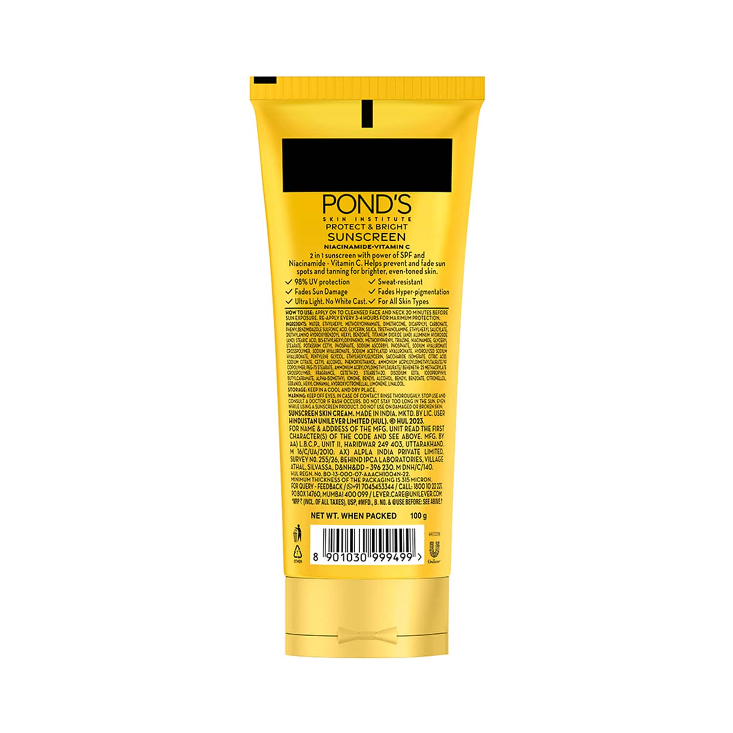 Pond's Sun Miracle SPF 50 PA+++ Light Sunscreen - Protect & Bright, With 3% Active Niacinamide (100 g)