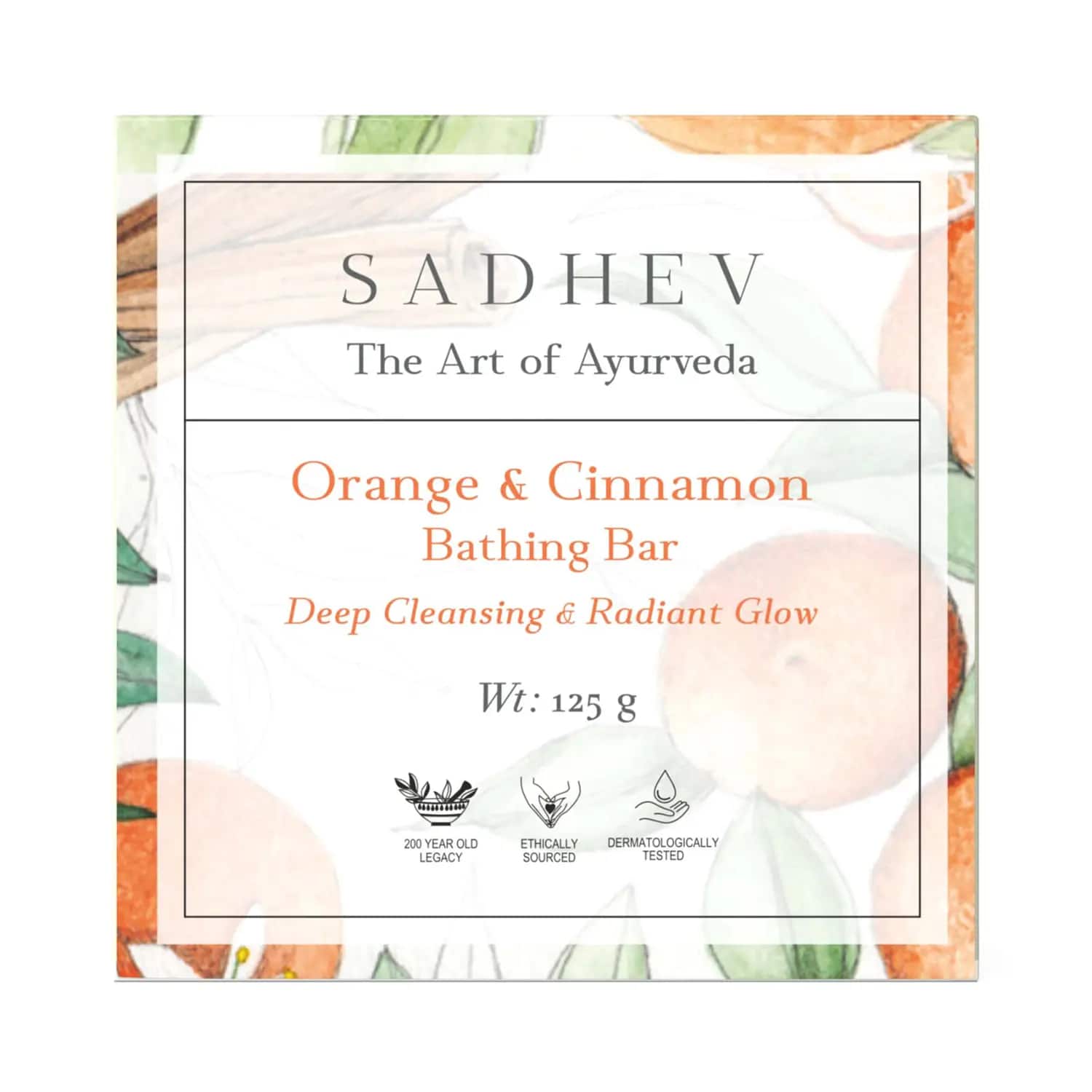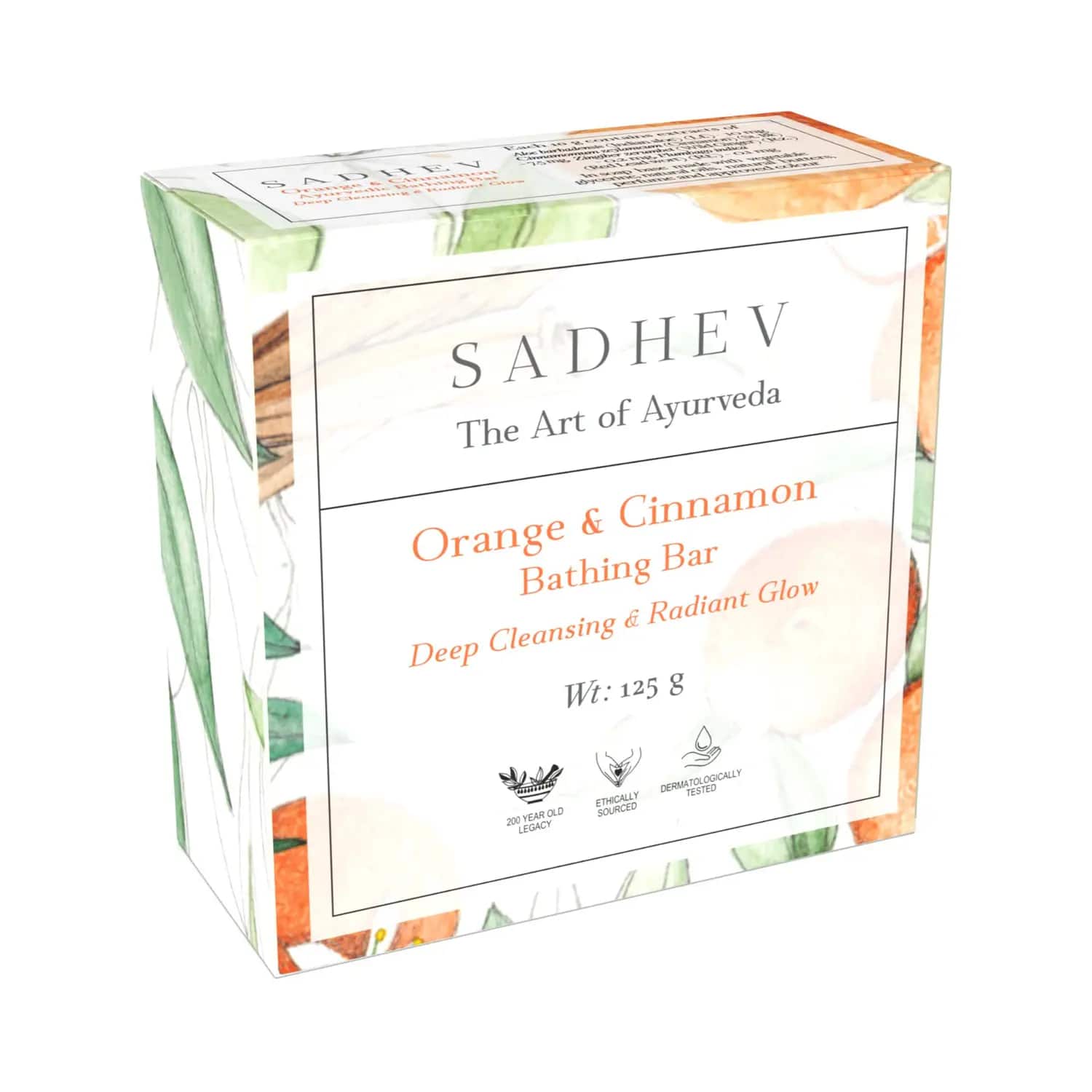 Get rid of germs from your skin with the Sadhev Orange & Cinnamon Anti Wrinkle & Radiant Glow Bathing Bar (125g). This orange bathing bar exfoliates your skin, removes dead skin cells, and restores suppleness. The Sadhev bathing bar also prevents acne and blemishes to increase the brightness of your skin.Key Features & Benefits:Enriched with wild ginger to brighten your skinAnti-acne bathing bar fights blemishes and acneOil-control bathing bar removes excess oilFree of paraben and sulfate for safe useKey Ingredients:Orange: Exfoliates your skinCinnamon bark: Removes dead skin cellsWild ginger: Brightens your skinHow to Use:Wet your body. Apply the soap gently to lather. Rinse off well after use.About the Brand:The beginning is always from the roots, A journey with his mother to his ancestral home in the quaint town of Vallapad in Kerala, to pay respects to their forefather, Cholayil Kunju Maami Vaidyar, stirred the beginning of Sadhev for Lasakan Cholayil.Renowned for his unconventional healing techniques during his time, Vaidyar was regarded as the doyen of Ayurveda for having created countless miraculous treatments and exceptional cures.200 years later, a sunny afternoon walk in his ancestral hometown, by the meandering blue streams across the endless coconut groves sparked the idea of bringing the secrets and science of his forefather's Ayurvedic experience for the modern connoisseur of today.Lasakan's flame grew brighter as he continued to fuel his ignited passion with a desire to bring to this world of noise, chaos, chemicals and plastics a solution from ancient wisdom that would restore perfect inner balance and enchanting outer beauty.Lasakan and his mother Jayadevi Cholayil launched Sadhev, a stirring curation of exotic beauty and wellness treatments in 2019. The luxury Ayurvedic care blissfully blends the science of wellness with the art of Ayurveda to create an inextricable symphony of the body, mind and soul.Products from Sadhev are infused with precious insights from traditional Ayurveda, delicately blended with pure ingredients, sourced responsibly and carefully from Sadhev's own 80 acre sustainably grown organic sanctuary- Sadhevana in South India.Farmers of Sadhevana nurture the Earth with care, using sustainable farming practices steeped in ancient agricultural wisdom. Botanicals that do not grow in India are carefully sourced from their true origins, from organic estates across the world, enabling the use of only the purest and choicest ingredients in every creation. For example, Argan Oil from Morocco, Saffron Petals from the Valleys of Afghanistan, Butters from Switzerland and Rose Absolute from Bulgaria are handpicked to make Sadhev's exotic infusions.