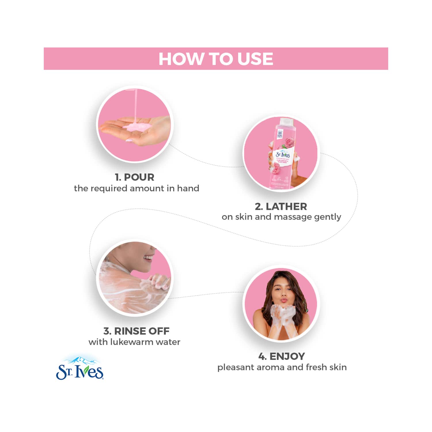 Cleanse and soothe your body with the St. Ives Refreshing Rose Water & Aloe Vera Shower Gel (650ml). This moisturizing body wash, made with 100% natural rose and aloe vera extracts, softens the skin and leaves it feeling refreshed. Also, the aloe vera in this St. Ives shower gel moisturizes the skin, while the rose water soothes irritations and softens the skin.Key Features & Benefits:Formulated with natural rose and aloe vera extracts to refresh the skinInfused with aloe vera to moisturize the skinHelps removes nasty dirt and bacteria that can damage your skinAdded rose water soothes skin irritationsKey Ingredients:Aloe vera: Moisturizes the skinRose water: Soothes irritations and softens the skinAll Ingredients:Water (Eau), Sodium Laureth Sulfate, Sodium Chloride, Cocamide Mea, Fragrance (Parfum), Citric Acid, Sodium Benzoate, Tetrasodium Edta, Glycerin, Ppg-9, Aloe Barbadensis Leaf Juice, Rosa Damascena Flower Extract, Benzyl Alcohol, Citronellol, Geraniol, Hexyl Cinnamal, Limonene, Linalool, Red 33 (Ci 17200), Yellow 5 (Ci 19140).How to Use:To start, pour the body wash on a wet loofah. After that, squeeze the loofah to create a lather and massage it on your damp skin. Then, rinse off the body wash with water and towel dry your body to get soft and fragrant skin.About the Brand:Founded in 1984, St. Ives is an American skincare brand under Unilever. Their philosophy is “science meets nature, ” and they use only natural ingredients to create highly effective, affordable, and sustainable products. The brand aims to develop products with formulas that delight the senses and leave your skin with a soft, fresh feel. St. Ives offers their products in over 100 countries. All their products, from scrubs, facewashes, and moisturizers to body lotions, are cruelty-free and devoid of harsh chemicals.Check out more St. Ives Body Wash & Shower Gel options here, or browse through tokocart's full range of Body Wash & Shower Gel from top global brands.You can also explore other products from the world of St. Ives here on tokocart.