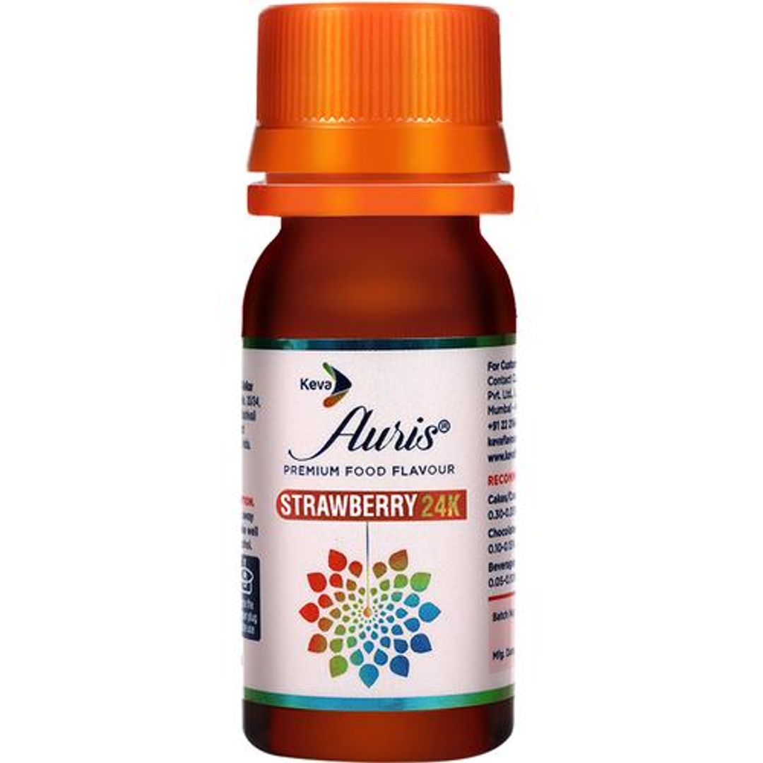 Auris an exclusive range of premium food flavours - Strawberry 24K. Ideal for flavouring Ice creams, Cakes, Cupcakes, Chocolates, Cookies, Sweets, Frostings, Desserts and Beverages.Use very few drops - Only few drops are required for most of the dishes.This product is 100% vegetarian, free from alcohol, and water soluble, 2 Years Shelf life. Strawberry Essence / Flavour in PET bottle. CERTIFIED AND SAFE: FSSC 22000 and ISO 9001 certified plants, approved by FSSAI.