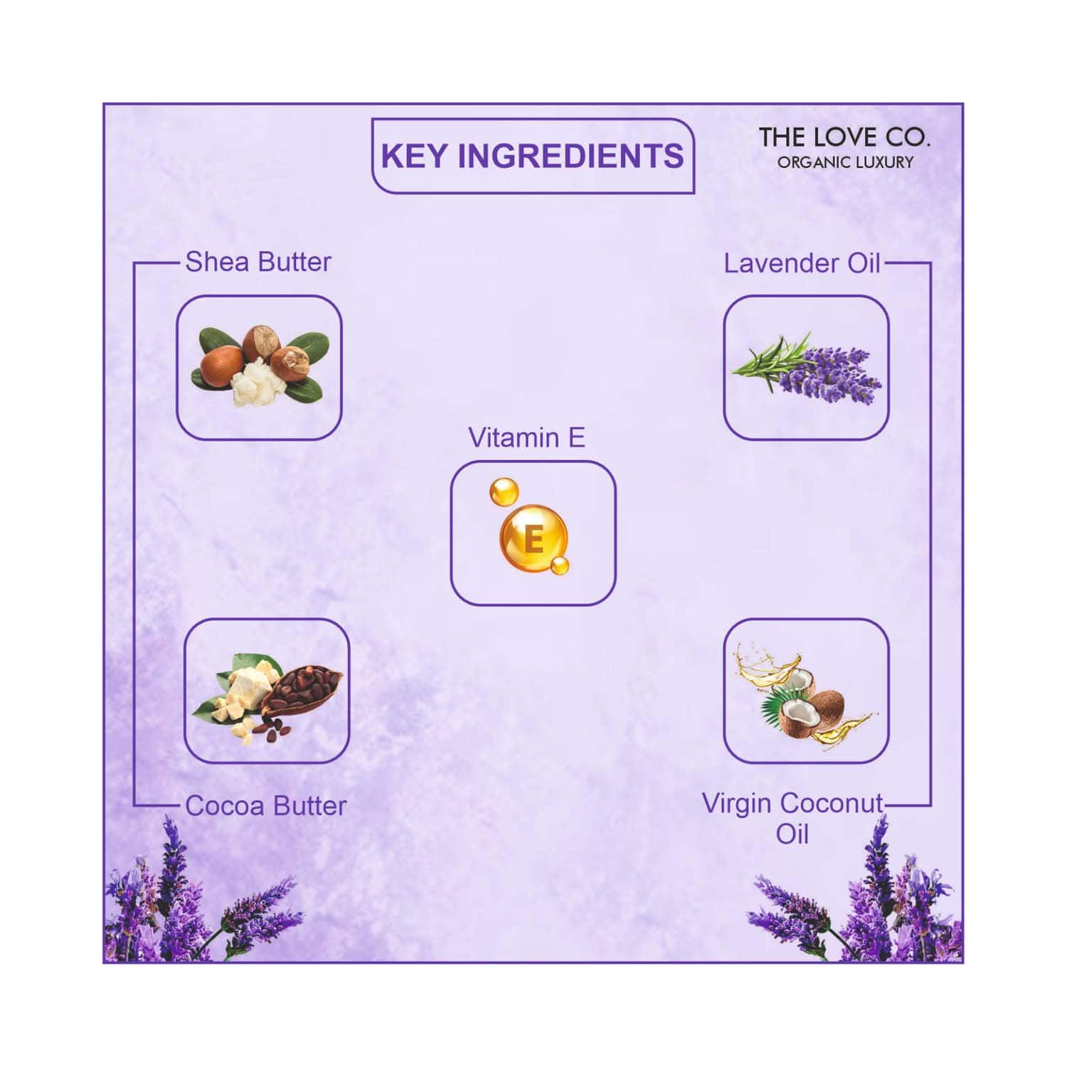 Key Ingredients:Lavender essential oil: Offers a soothing fragranceShea butter and coconut oil: Deeply hydrate and condition the skinVitamin E: Protects and helps repair the skin