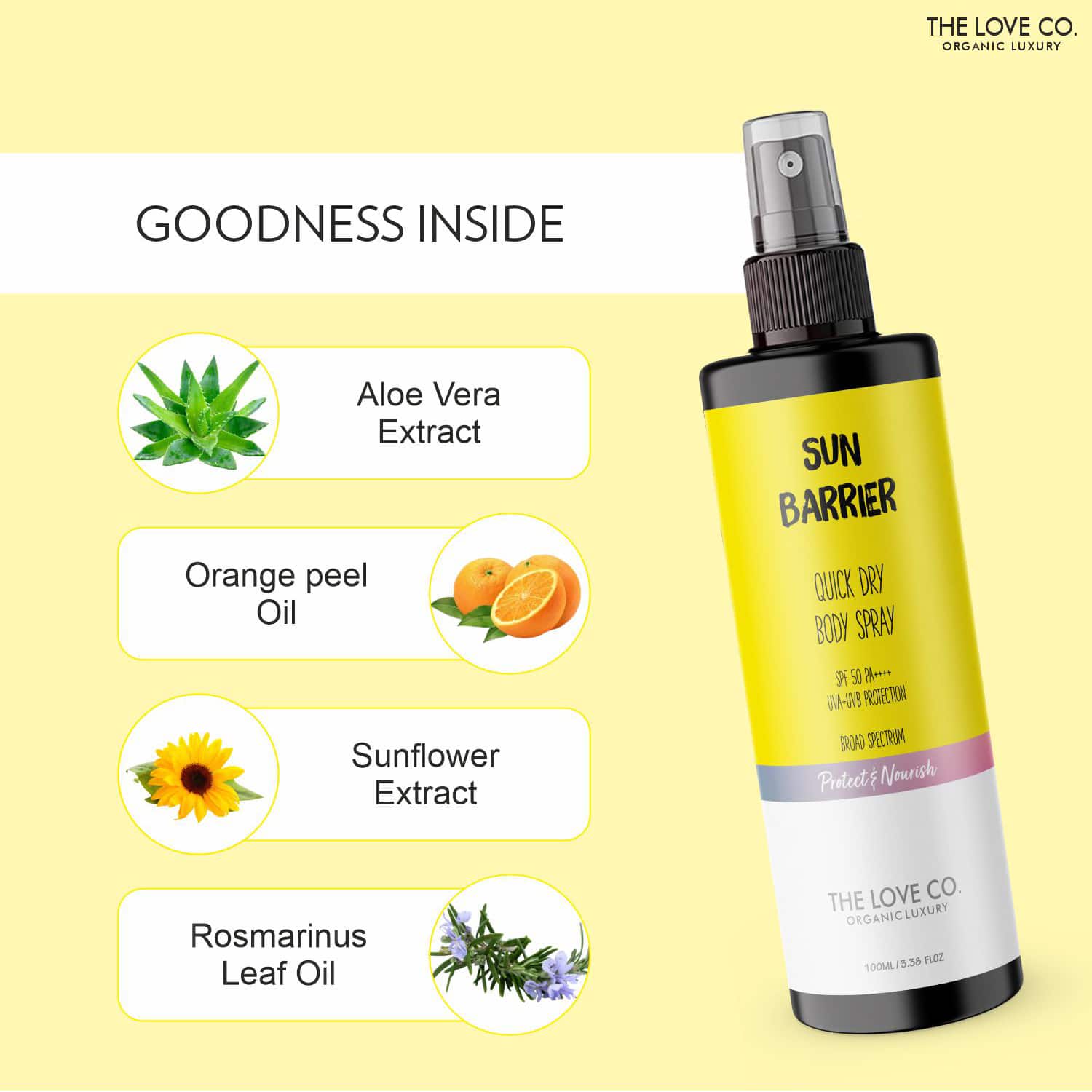 THE LOVE CO. Sun Barrier Quick Dry Body Spray With SPF 50 PA++++ UVA/UVB Protection (100ml)