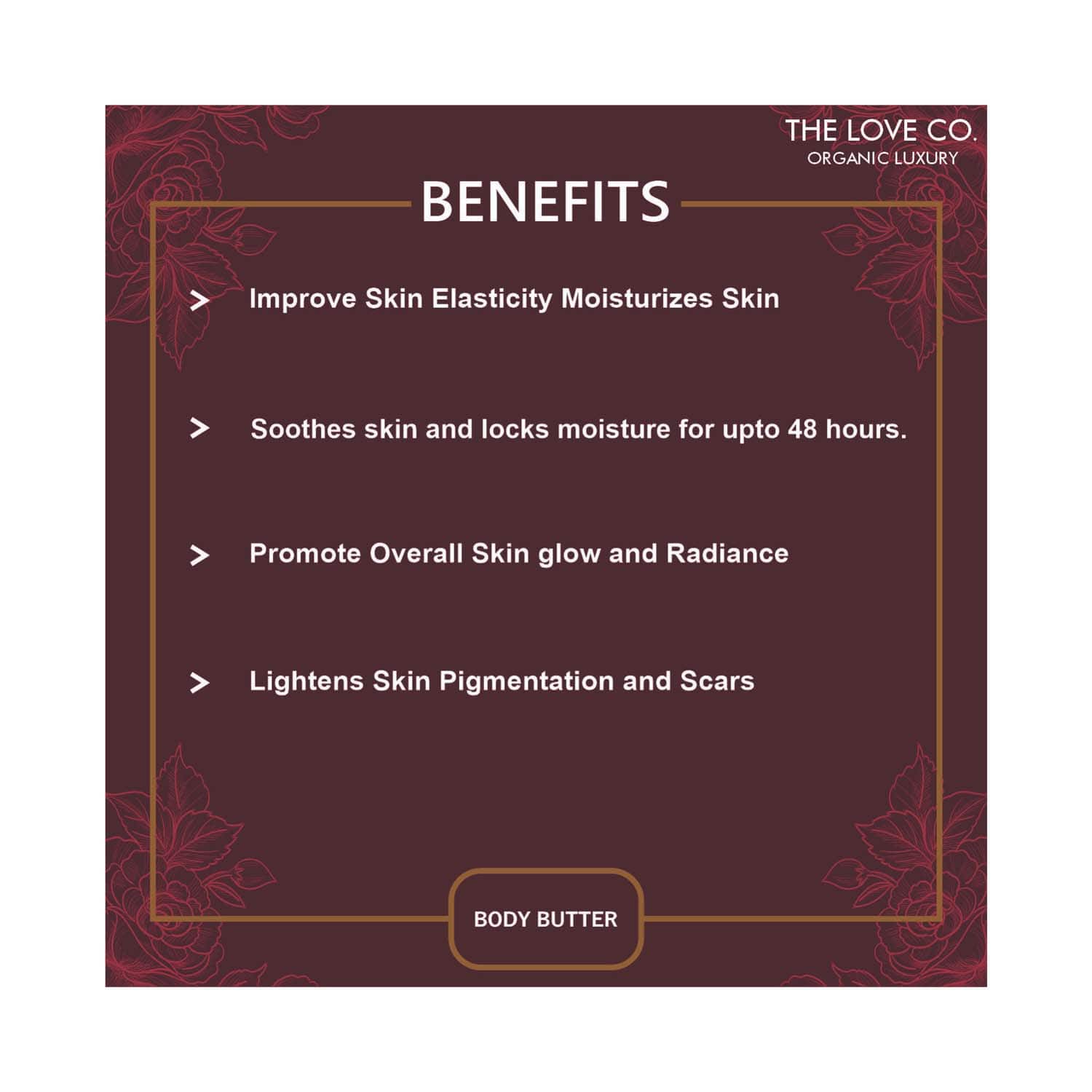 Fill your days with the luxury of the THE LOVE CO. The Love Co Black Rose & Oud Body Butter Deep Moisturization With Pure Shea Butter For Nourishing Essential Body Care (200g). Enriched with shea butter, this hydrating body butter offers instant moisturization. It is a scented body butter with an exquisite black rose and oud scent. The rich and velvety texture of this non-greasy body butter allows this THE LOVE CO. body butter to provide your skin with intense hydration for 48 hours.