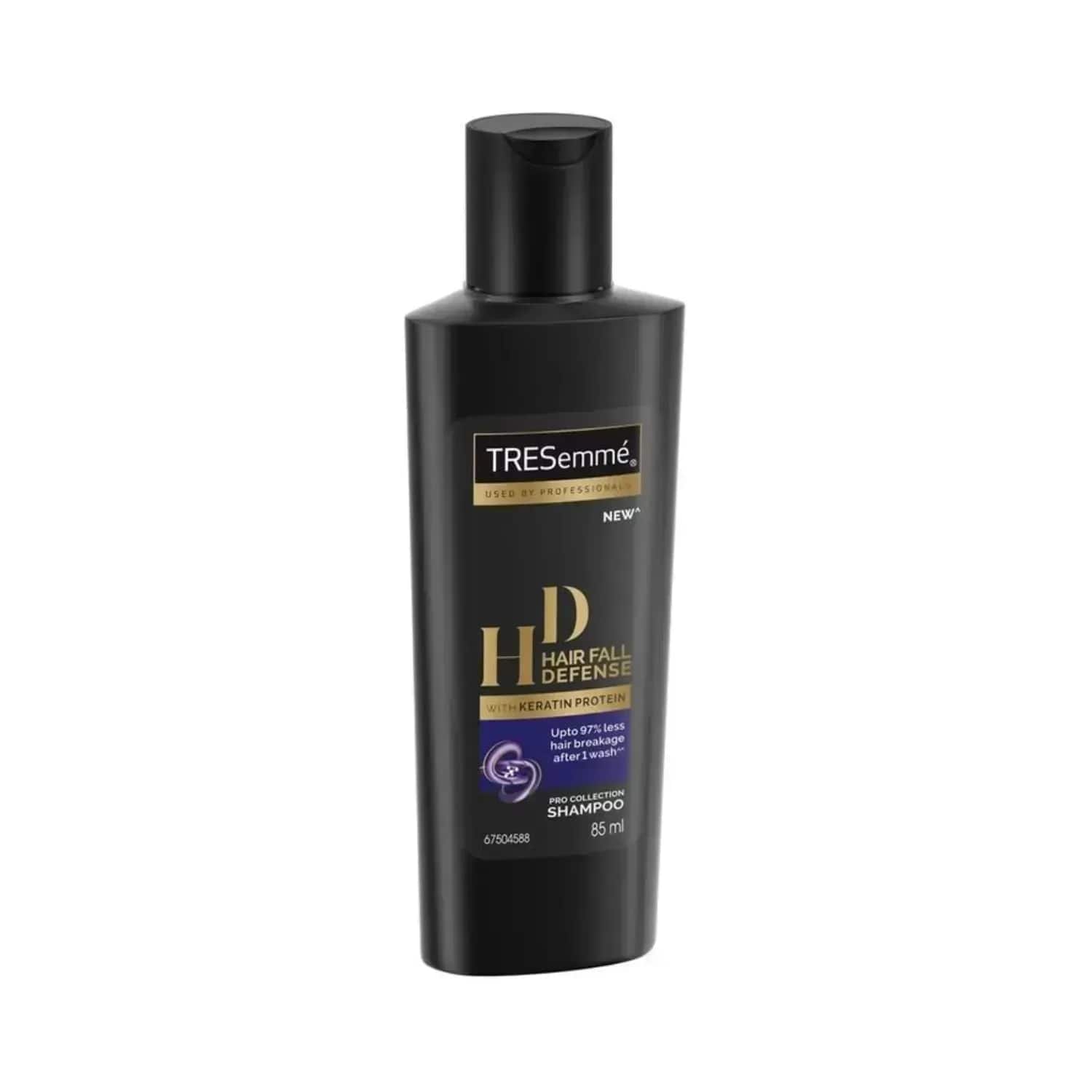 The Tresemme Hair Fall Defense Shampoo - (85ml) efficiently bolsters your hair condition. It has a scientifically advanced formula with rich ingredients for averting hair breakage and restoring the strength of the hair. Furthermore, this TRESemme shampoo hydrates your hair efficiently to make it longer and stronger.Key Features & Benefits:Enriched with keratin to smoothen and straighten the hairScientifically advanced shampoo for preventing hair fall and providing elasticity to the hairParaben-free shampoo for safe useCruelty-free shampoo suitable for all types of hairKey Ingredients:Keratin: Helps in smoothing and straightening the hairHow to Use:Firstly, take a standard quantity of this shampoo and apply it to your wet hair. After that, massage it gently in circular motions all over your scalp and create a lather. Then, let it absorb into the roots of your hair for at least 5 minutes before rinsing it off with normal water. Finally, you can follow it with a conditioner as per your requirement.All Ingredients:Water, Sodium Laureth Sulfate, Dimethiconol And Tea-Dodecylbenzenesulfonate, Cocamidopropyl Betaine, Sodium Chloride, Perfume, Carbomer, Glycol Distearate, Guar Hydroxypropyltrimonium Chloride, Mica And Titanium Dioxide, Sodium Hydroxide, Citric Acid, Dmdm Hydantoin, Disodium Edta, Lysine Hydrochloride, Hydrolyzed Keratin, Panthenol, Pyridoxine Hcl, Niacinamide, Vitamin E Acetate, Sodium Ascorbyl Phosphate, Methylchloroisothiazolinone And Methylisothiazolinone, Linalool, Benzyl Salicylate, Citronellol, Alpha-Isomethyl Ionone, Hexyl CinnamalAbout the Brand:Founded by Edna L. Emme in the year 1948, TRESemme is dedicated to creating hair care and styling products that are salon quality without the salon price. The brand promotes the values of independence, self-reliance, and most importantly, the confidence every woman needs to step up and meet the next challenge. TRESemme believes that every woman deserves to look and feel fabulous like they've just stepped out of the salon. All their products use the latest technology to help you create stunning hairstyles and experience that salon feeling every day.Check out more Tresemme Shampoo options here, or browse through tokocart's full range of Shampoo from top global brands.You can also explore other products from the world of Tresemme here on tokocart.