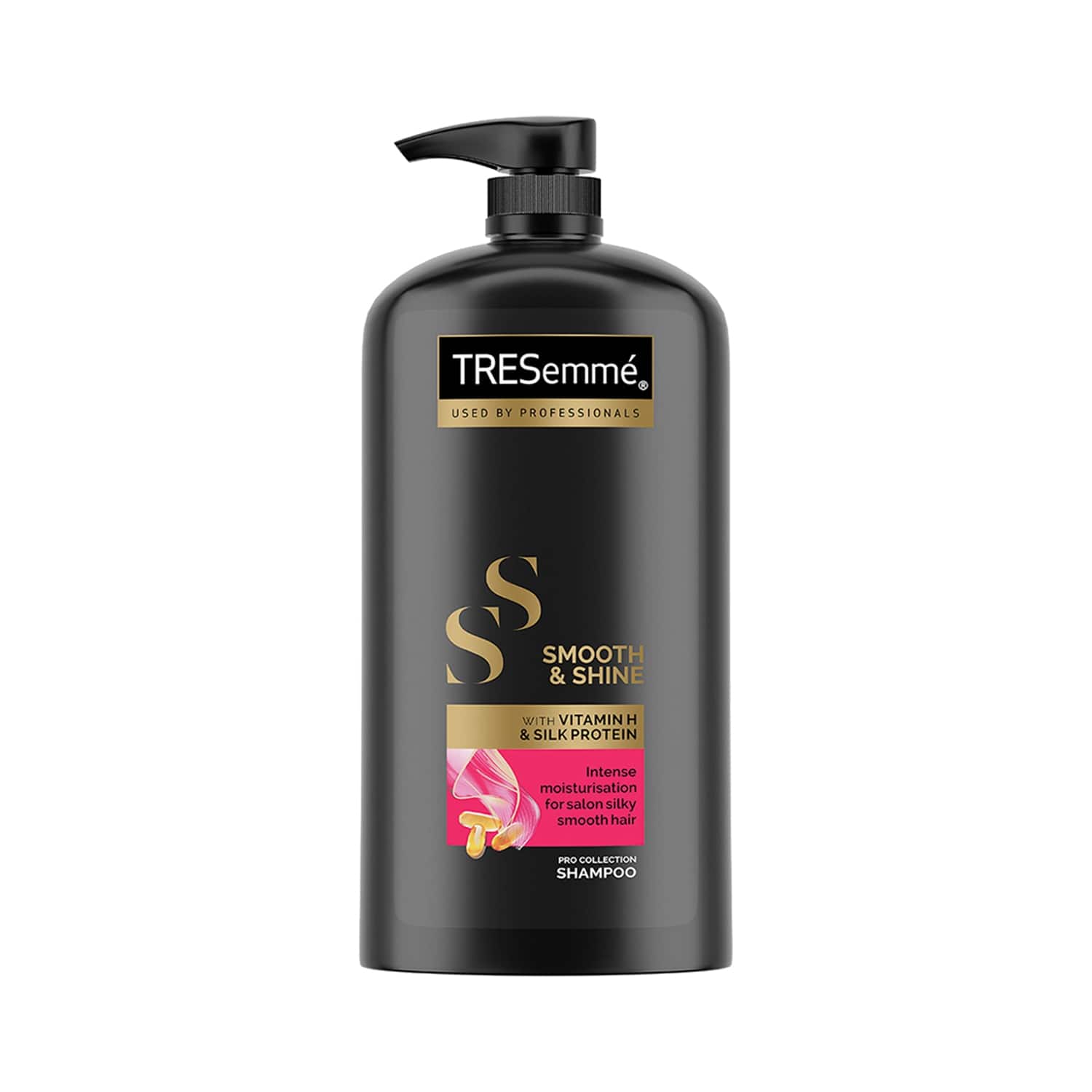 Tresemme Smooth & Shine Shampoo - (1000ml)Make your hair stronger and sturdier with the Tresemme Smooth & Shine Shampoo - (1000ml). It has an advanced smoothing system with micro-moisture technology for intensely cleansing and protecting the hair from damage. Furthermore, this TRESemme shampoo efficiently moisturises your hair to improve its softness and elasticity.Key Features & Benefits:Enriched with the likes of argan oil and vitamin H to make the hair strong and moisturisedAdvanced smoothing shampoo to help control frizz and flyaway in the hair for a long timeParaben-free shampoo for safe useCruelty-free shampoo suitable for all types of hairKey Ingredients:Argan oil: Provides moisture and protects the hair from damageVitamin H: Makes the hair strong and sturdyHow to Use:Firstly, take a standard quantity of this shampoo and apply it to your wet hair. After that, massage it gently in circular motions all over your scalp and create a lather. Then, let it absorb into the roots of your hair for at least 5 minutes before rinsing it off with normal water. Finally, you can follow it with a conditioner as per your requirement.All Ingredients:Water, Sodium Laureth Sulfate, Dimethiconol And Trideceth-10 And Tea-Dodecylbenzenesulfonate, Cocamidopropyl Betaine, Sodium Chloride, Perfume, Amodimethicone And Cetrimonium Chloride And Trideceth-12, Carbomer, Glycol Distearate, Guar Hydroxypropyltrimonium Chloride, Mica And Titanium Dioxide, Sodium Hydroxide, Citric Acid, Dmdm Hydantoin, Disodium Edta, Lysine Hydrochloride, Hydrolyzed Silk, Panthenol, Urea, Disodium Phosphate, Biotin & Citric Acid, Argania Spinosa (Argan Oil) Kernel Oil, Methylchloroisothiazolinone And Methylisothiazolinone, Linalool, Benzyl Salicylate, Citronellol, Alpha-Isomethyl Ionone, Hexyl CinnamalTresemme Smooth & Shine Conditioner (340ml)With the Tresemme Smooth & Shine Conditioner - (340ml) you can finally get salon hair in minutes with this revolutionary hair-styling tool. This moisturising conditioner provides intense conditioning for silky and smooth hair. Enriched with vitamin H and silk protein, this conditioner nourishes your hair and improves its texture and health.Key Features & Benefits:Infused with vitamin H and silk protein to improve texture and health of hairMoisturising conditioner offers silky and smooth hairNourishing conditioner softens each strandHydrating conditioner repairs damaged hairKey Ingredients:Vitamin H and silk protein: Moisturise hair and improve its texture and healthHow to Use:Starting with Shampoo, followed by conditioner, apply an adequate amount of it to wet hair from mid-lengths to ends. Leave it for 2-3 minutes and rinse it with lukewarm water.All Ingredients:Water, Cetearyl Alcohol, Dimethicone And Amodimethicone And Peg-7 Propylheptyl Ether And Cetrimonium Chloride, Behentrimonium Chloride, Perfume, Stearamidopropyl Dimethylamine, Sodium Chloride, Lactic Acid, Disodium Edta, Lysine Hydrochloride, Urea, Disodium Phosphate, Biotin & Citric Acid, Hydrolyzed Silk, Panthenol, Argania Spinosa Kernel (Argan) Oil, Methylchloroisothiazolinone And Methylisothiazolinone, Linalool, Benzyl Salicylate, Citronellol, Alpha-Isomethyl Ionone, Hexyl CinnamalAbout the Brand:Founded by Edna L. Emme in the year 1948, TRESemme is dedicated to creating hair care and styling products that are salon quality without the salon price. The brand promotes the values of independence, self-reliance, and most importantly, the confidence every woman needs to step up and meet the next challenge. TRESemme believes that every woman deserves to look and feel fabulous like they've just stepped out of the salon. All their products use the latest technology to help you create stunning hairstyles and experience that salon feeling every day.