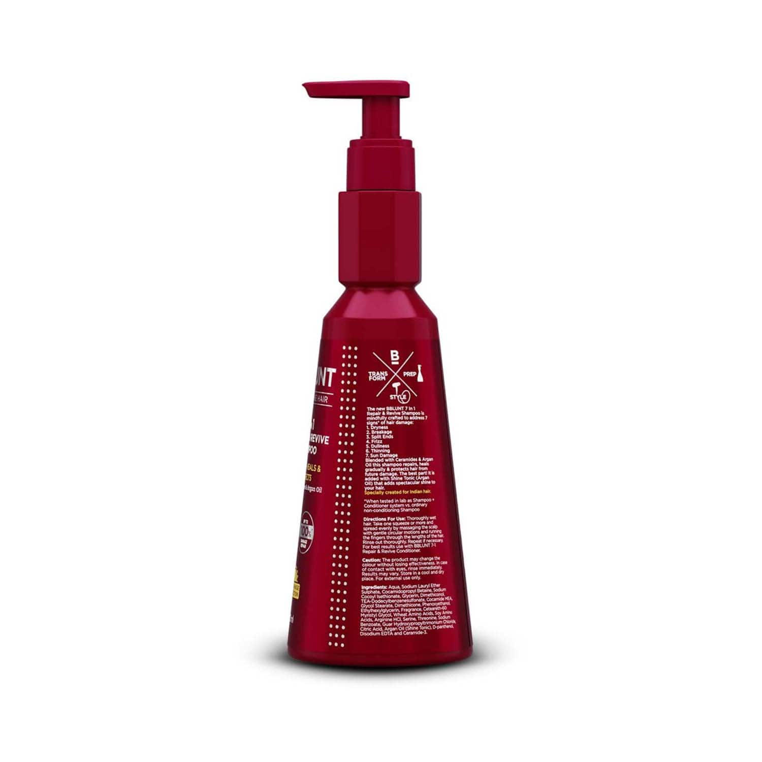 Wash away your hair troubles with the BBlunt 7 in 1 Repair & Revive Shampoo (300 ml). This revitalizing shampoo contains argan oil to replenish the hair while cleansing. Also, this moisturizing shampoo combats dryness, breakage, split ends, frizz, dullness, thinning, and sun damage to repair up to 100% damage. Plus, this BBlunt shampoo has ceramides to fortify your locks and make them healthier.