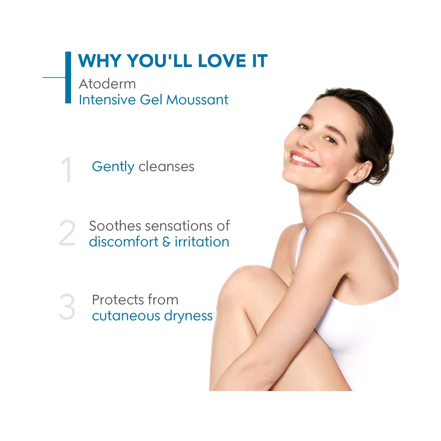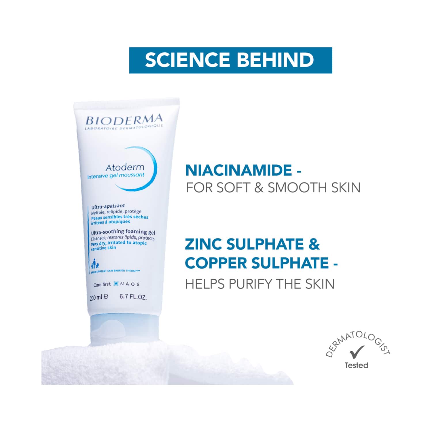 Give your sensitive skin that extra care with the help of the Bioderma Atoderm Intensive Gel Moussing Ultra-Soothing Shower Gel (200ml). This lipid-replenishing cleansing gel is formulated with a unique ultra-soothing base that soothes sensations of discomfort, relieves itching and irritation, and helps strengthen the skin barrier. It blocks the penetration of allergens, hydrates skin, and limits inflammatory reactions. Also, the Bioderma shower gel is hypoallergenic, non-comedogenic, paraben-free, and soap-free.Key Features & Benefits:Gently cleanses to remove dirt and impuritiesFormulated with a superfatting cleansing base that ensures excellent toleranceDermatologically tested for safe useIdeal for dry to atopic sensitive skinKey Ingredients:Niacinamide: Has anti-inflammatory properties that help reduce inflammationAll Ingredients:Aqua/Water/Eau, Sodium Laureth Sulfate, Lauryl Glucoside, Peg-200 Hydrogenated Glyceryl Palmate, Disodium Edta, Peg-7 Glyceryl Cocoate, Caprylyl Glycol, Zinc Sulfate, Sodium Chloride, Copper Sulfate, Sodium Hydroxide, Citric Acid, Polysorbate 20, Niacinamide, Fructooligosaccharides, Mannitol, Xylitol, Rhamnose. [Bi 731]How to Use:To use Atoderm Intensive Gel Moussant, apply it onto moistened skin, create a lather, and then rinse off completely. Afterward, gently dry your skin.About the Brand:Bioderma is a French skin care brand founded in 1977 by Jean-Noel Thorel, a pharmacist and biologist. The brand is known for its innovative and science-driven approach to skin care, offering a range of products that cater to various skin concerns. Bioderma's products are formulated using a unique blend of active ingredients that work in harmony with the skin's natural biology to promote healthy and radiant-looking skin. Their commitment to using safe and effective ingredients has made it a trusted brand among dermatologists and skin care professionals.Check out more Bioderma Body Wash & Shower Gel options here, or browse through tokocart's full range of Body Wash & Shower Gel from top global brands.You can also explore other products from the world of Bioderma here on tokocart.