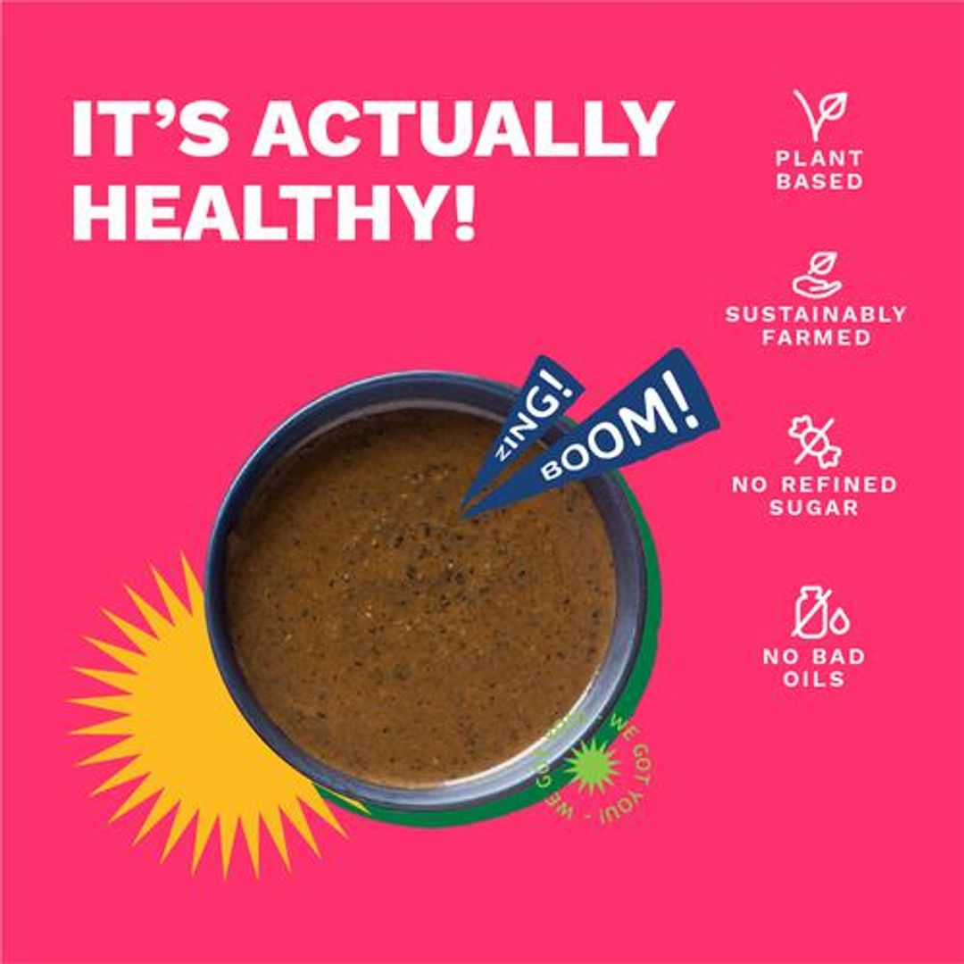 Water, Kabuli Chana Miso, Jaggery, Cold Pressed Sesame Oil, Naturally Fermented Coconut Vinegar, Green/Spring Onions, Kashmiri Chilli, Garlic, Black Sesame Seeds, Tomato Powder, Timur Pepper, Solar Dried Pineapple, Oyster Mushroom Powder.