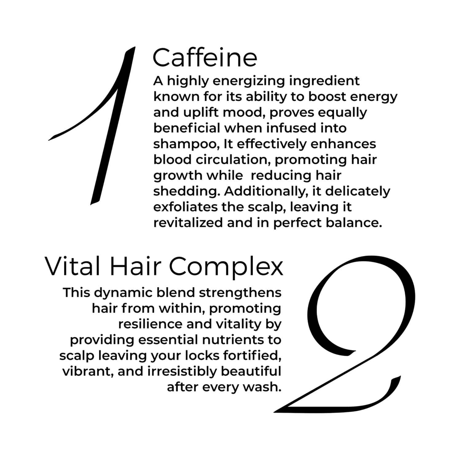 Key Features & Benefits:Enriched with caffeine to reduce hairfallRepairs breakage and split ends for healthy hairStrengthens the hair strands for strong rootsFree from sulfate to ensure safe use