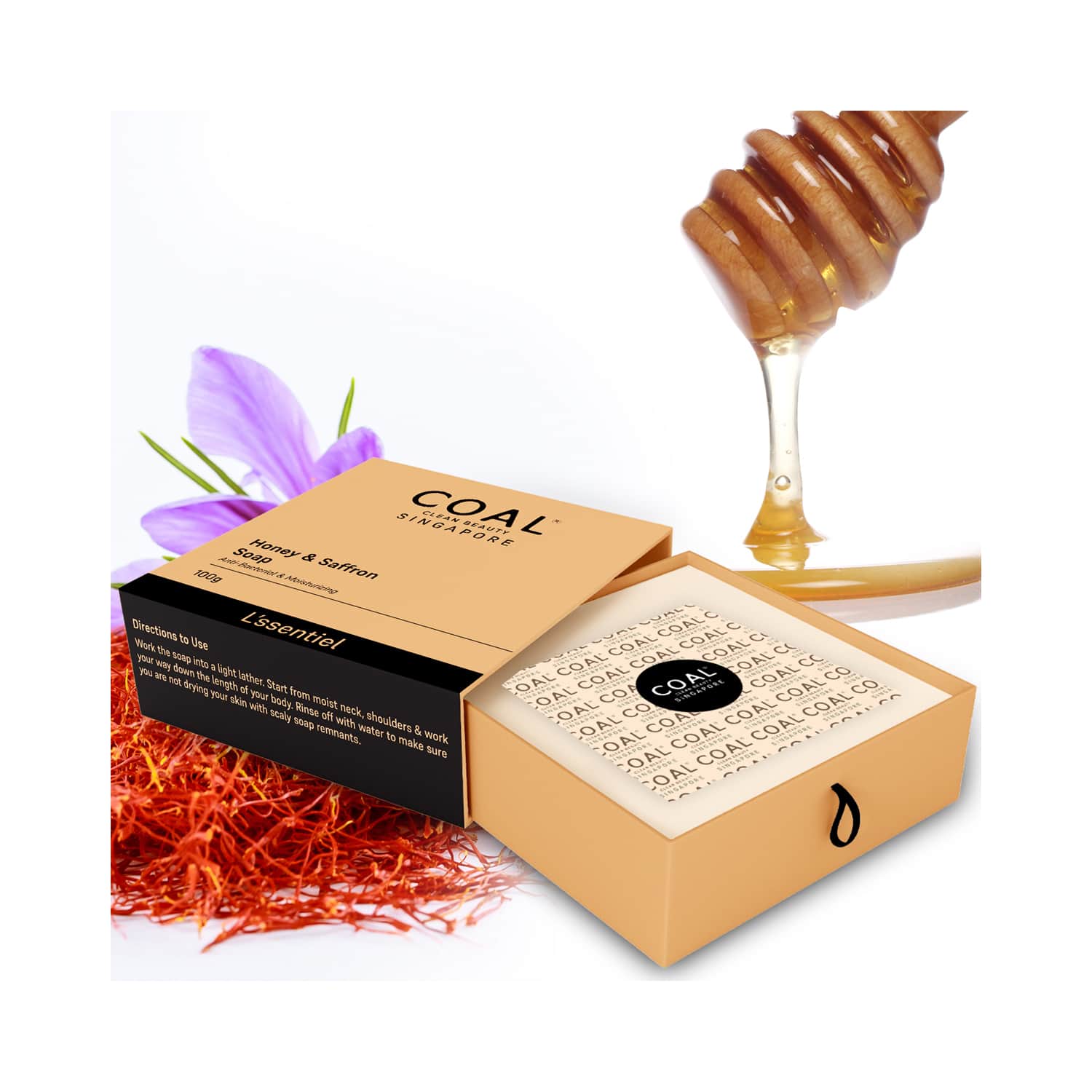 Switch up your skincare routine with the Coal Clean Beauty Honey & Saffron Soap (100g). This hydrating soap contains shea butter to moisturize and a blend of honey and saffron to brighten the skin. The Coal Clean soap also helps boost collagen production to keep your skin youthful and blemish-free.Key Features & Benefits:Infused with saffron to impart a natural glowContains shea butter and honey to moisturize the skinPromotes collagen production for youthful-looking skinReduces blemishes for even-toned skinKey Ingredients:Glycerin, honey, olive oil, and wheat germ oil: Moisturize the skinSaffron: Brightens the skinAll Ingredients:Coconut Oil, Purified Water, Glycerin, Stearic Acid, Sodium Hydroxide, Sorbitol, Castor Oil, Propylene Glycol, Olive Oil, Fragrance (Ifra), Wheat Germ Oil, Mahua Oil, Crocus Sativus Flower (Saffron) Extract, Cocoa Butter (Theobroma Cacao) Seed Oil, Sodium Benzoate, Honey, Butylated Hydroxytoluene, Shea Butter (Butyrospermum Parkii) Seed Oil.How to Use:Take the soap. Apply it to your damp skin. Massage gently and work up a lather. Rinse off with water.About the Brand:Rrajesh Bakshi, a serial entrepreneur and experienced company builder, founded Coal to give every Indian the opportunity to participate in India's growth story. They aim to fundamentally enhance the trust of their consumers in skin care products. They deeply researched the skin care products offered to be high performance, hypoallergenic, and of premium quality. These natural products are packaged in various luxurious and innovative face and body care products and are carefully formulated to promote healthy and radiant skin.Check out more COAL CLEAN BEAUTY Soaps options here, or browse through tokocart's full range of Soaps from top global brands.You can also explore other products from the world of COAL CLEAN BEAUTY here on tokocart.