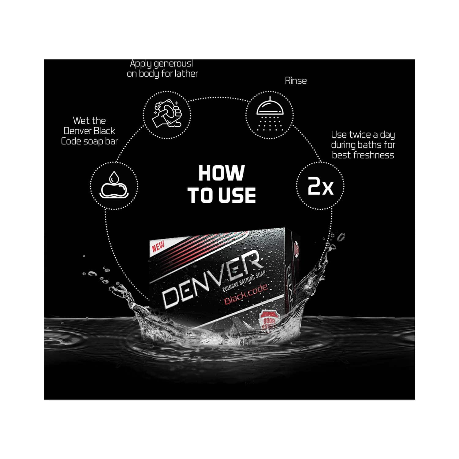 Smell like royalty with the Denver Black Code Bath Soap For Men (125 g). This body soap is enriched with a masculine fragrance that helps refresh your senses. With fresh green notes settling into a woody accord, this Denver soap provides optimal protection against body odor. Plus, this gentle soap cleanses your body deeply while offering long-lasting freshness.