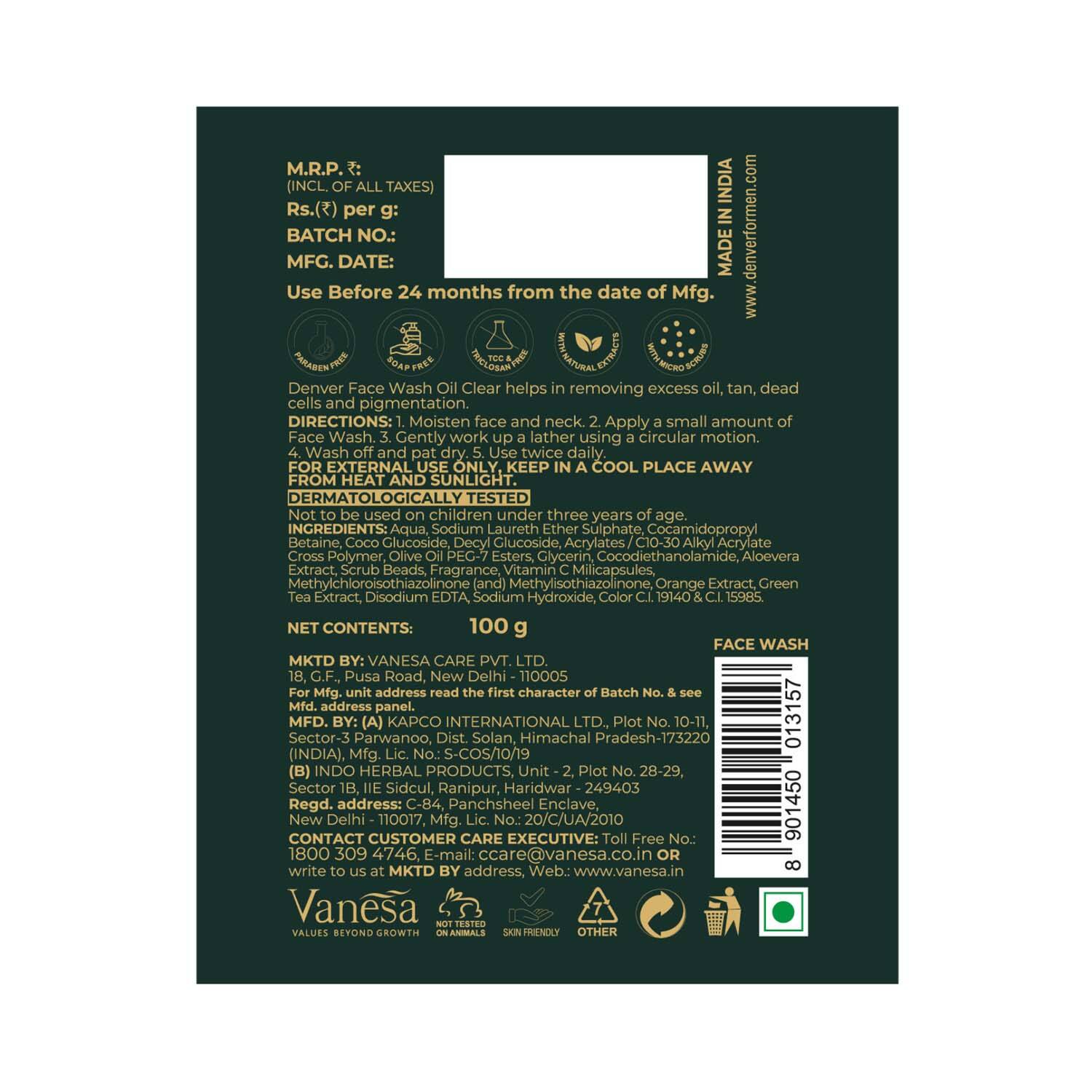 Denver Oil Clear Face Wash For Men (100 g)