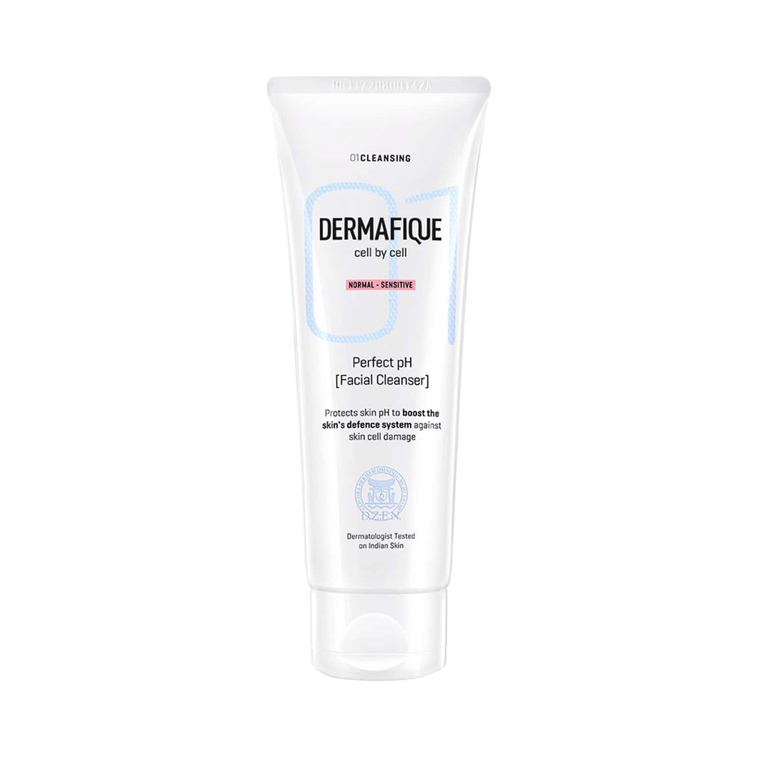 Forget about skin damage with the Dermafique Perfect Ph Facial Cleanser (100ml). This vitamin E face cleanser deeply cleanses the skin and maintains the skin's pH level. It is a moisturizing cleanser that locks moisture in the skin. The Dermafique facewash is also a skin-protecting cleanser that repairs damaged skin cells.Key Features & Benefits:Infused with chamomile extract to repair damaged skin cellsRemoves pollution, dirt, and impurities for clear skinNourishing facewash maintains the pH level of the skinFree from soap, alcohol, and paraben for safe useKey Ingredients:Chamomile extract: Protects skin cells from damageVitamin E: Moisturizes the skinAll Ingredients:Aqua, Sodium Lauroyl Sarcosinate, Decyl Glucoside, Acrylates/Steareth-20 Methacrylate Crosspolymer, Ethyl Alcohol, Peg-400, Peg-40 Hydrogenated Castor Oil, Glycerin, Isopropyl Myristate, Cocamidopropyl Betaine, Sodium Methyl Cocoyl Taurate, Panthenol, Tocopheryl Acetate, Chamomile Extract, Fragrance, Triethanolamine, Diethyl Phthalate, Dmdm Hydantoin, Linalool, Limonene, Butylphenyl Methylpropional, Benzyl Salicylate, Hexyl Cinnamal, Alpha-Isomethyl Ionone, Ci 12490How to Use:Apply a thin layer on dry skin. After it starts foaming, leave it on for 3-5 minutes, wet your fingertips, and massage your face in circular motions to remove dead skin cells. The last step is to rinse with lukewarm water for healthier skin.About the Brand:Dermafique is an integral, intelligent skin care system that combines active ingredients and scientific innovations jointly developed by the expertise of dermatologists and cell biologists. Dermafique works with skin physiology to address skin problems that internal or external factors may cause. Healthy skin is built cell by cell, step by step, using proper skin care methods backed by science and skin-friendly products. This philosophy has led us to create Dermafique, a premium skincare brand specially formulated for Indian skin.