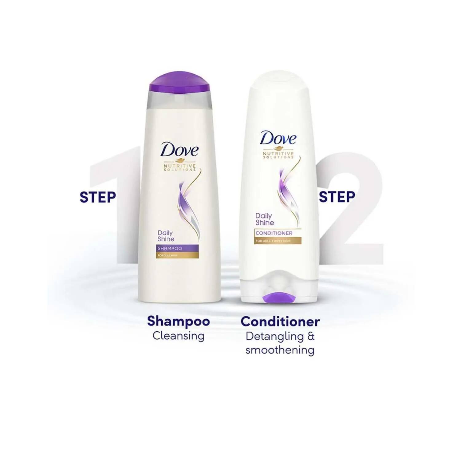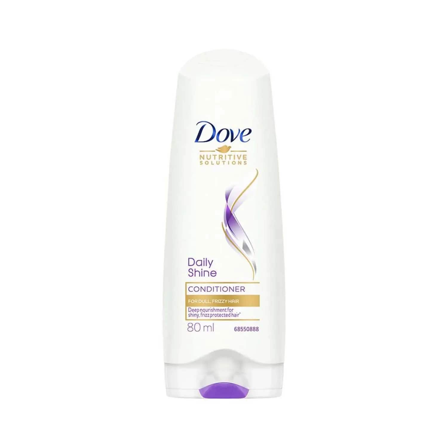 Keep your mane smooth and lustrous with the Dove Daily Shine Conditioner - (80ml). This Dove conditioner contains a nutritive serum that repairs and detangles frizzy hair and adds shine to it. The glycerin in it helps nourish and moisturise your hair. This gentle conditioner is free from parabens for safe use.Enriched with nutritive serum to detangle frizzy hair and add shineGlycerin nourishes and moisturises your hairCaring ingredients keep your hair smoothParaben- and cruelty-free conditioner enables safe useGlycerin: Nourishes and moisturises your hairWater, Cetearyl Alcohol, Dimethicone And Amodimethicone And Peg-7 Propylheptyl Ether And Cetrimonium Chloride, Glycerin, Behentrimonium Chloride, Perfume, Stearamidopropyl Dimethylamine, Sodium Chloride, Disodium Edta, Lactic Acid, Dmdm Hydantoin, Helianthus Annuus (Sunflower) Seed Oil, Methylchloroisothiazolinone And Methylisothiazolinone, Alpha-Isomethylâ Ionone, Citronellol, Linalool, Ci 19140, Ci 15985Squeeze half to one spoon of Dove Shine conditioner for shoulder-length hair. Slide it from your ears to the tips where hair tangles and breaks happen more. Leave it for a minute and wash with water thoroughly to get soft and shiny hair.Founded by the Lever brothers in 1957, Dove is a personal care brand that offers a wide range of facial and hair care products. The brand aims at redefining beauty standards and making beauty a source of confidence, not anxiety. With the launch of the Dove Self-Esteem Project in 2004, the brand continues to deliver self-esteem education to help young people realise their true beauty in being themselves. Dove has carefully curated products that are cruelty-free to ensure safe and reliable use for the millions of customers they cater to.Check out more Dove Conditioner options here, or browse through tokocart's full range of Conditioner from top global brands.You can also explore other products from the world of Dove here on tokocart.