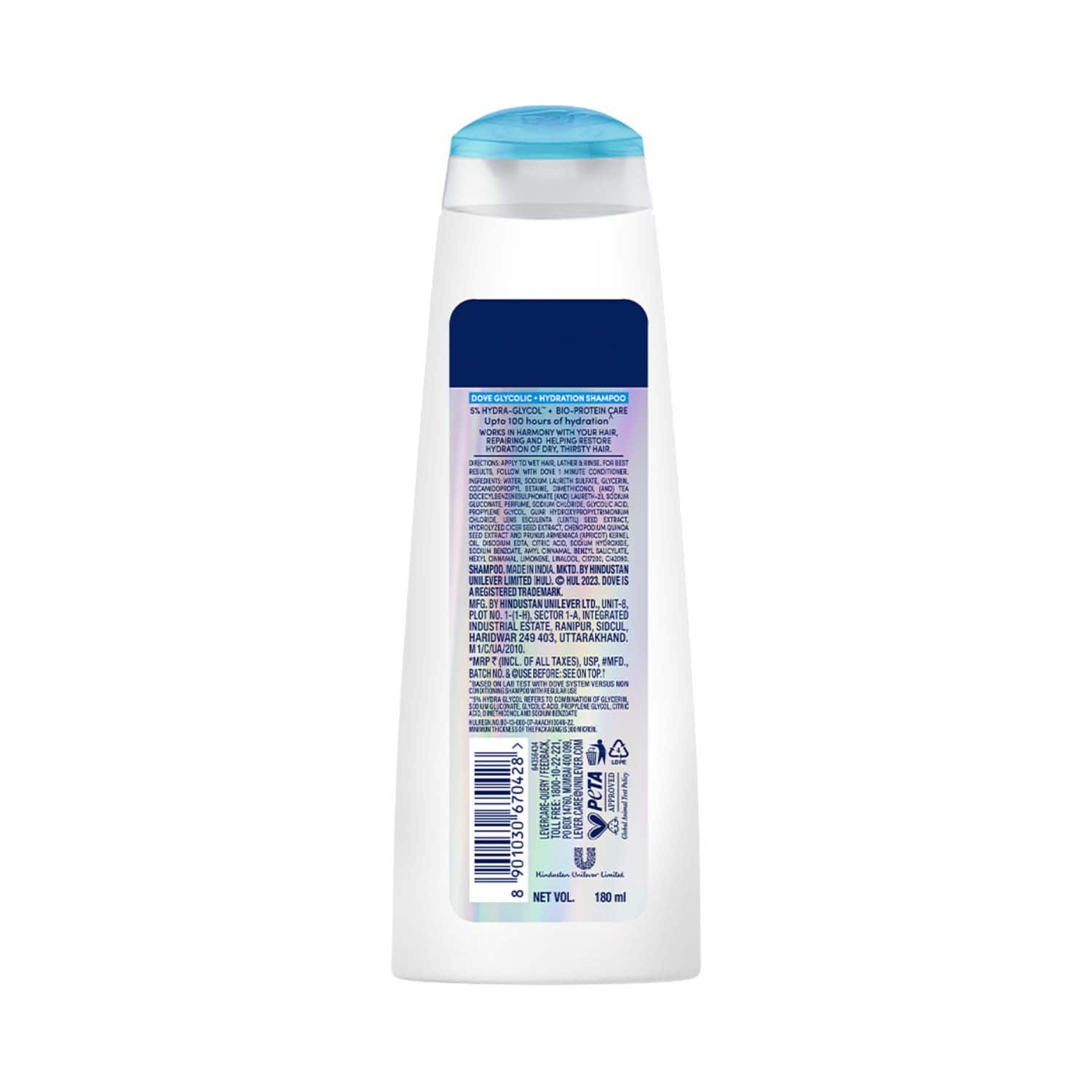 Provide salon-style care for your hair with the Dove Glycolic Hydration Shampoo (180 ml). This moisturizing shampoo is designed with 5% hydra-glycol technology that deeply cleanses and nourishes dry hair. The Dove shampoo is infused with apricot seed oil and quinoa seed extracts that smoothen and moisturize the hair. Plus, this nourishing shampoo contains glycerin that prevents dryness, softens, and restores damaged hair.