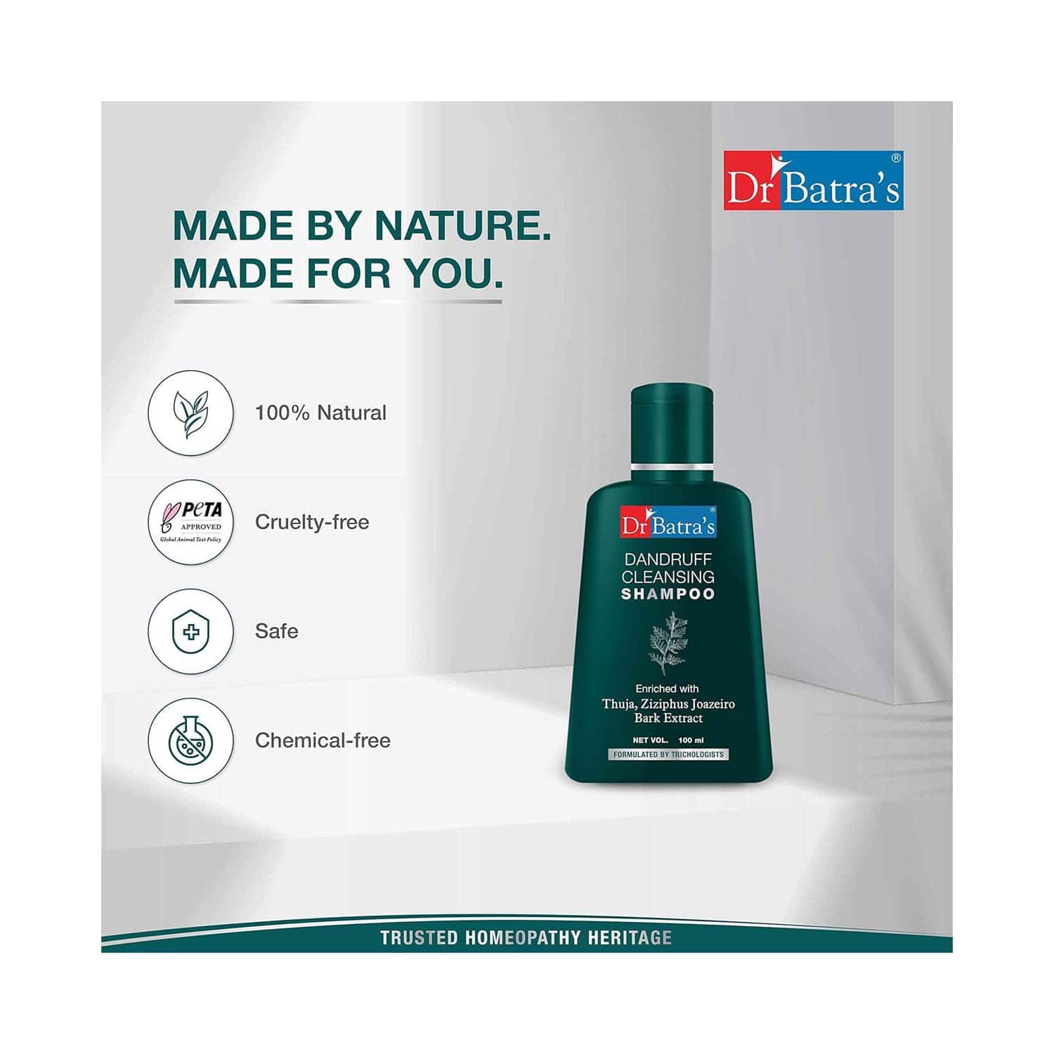 Revitalize your hair and banish dandruff with the Dr Batra's Dandruff Cleansing Enriched With Thuja Shampoo (100ml). Crafted with thuja to calm the scalp, this anti-dandruff shampoo eliminates dandruff flakes. It is a hair growth shampoo that promotes hair strength, reducing the risk of breakage and loss. With its natural formulation, this Dr Batra's shampoo frees your scalp from dryness, itchiness, and irritation.Key Features & Benefits:Prepared with thuja to soothe the scalp and eliminate dandruff flakesStimulates hair growth while reducing chances of hair breakage and hair lossSoothes the scalp to reduce dryness, itchiness, and irritationNatural formulation for safe and gentle useKey Ingredients:Ziziphus joazeiro: Has antifungal properties and prevents pollutant damageThuja: Soothes dry scalp and eliminates flakesTea tree oil: Has antifungal properties and unclogs poresAll Ingredients:Thuja Occidentalis Bark Extract, Ziziphus Joazeiro Bark Extract, Tea Tree OilHow to Use:Wet your hair. Take a sufficient amount of the shampoo in your palm and apply it to your hair. Massage the product into your hair for 2 minutes to create a lather, then wash it off thoroughly. Repeat the process if required.About the Brand:Dr Batra's Healthcare was founded by Dr. Mukesh Batra in 1982 in Mumbai. Dr. Batra graduated as a homeopathic doctor at 22, one of the youngest to ever accomplish the same. He began his journey by interning without pay at a local homeopathic clinic while working on his practice from the afternoon onwards, eventually earning some fame by hosting a show on health and exercise on Zee TV. In 2004, Dr. Batra branched out into the retail world with Dr Batra's Products, releasing solutions for various concerns based on his knowledge of homeopathy. What began with a few items in hair, skin, and personal care now addresses a broader range of issues and includes numerous options. All their products boast being dermatologically tested, natural free of harmful chemicals, cruelty-free, and suitable for anyone without any side effects.Check out more Dr Batra's Shampoo options here, or browse through tokocart's full range of Shampoo from top global brands.You can also explore other products from the world of Dr Batra's here on tokocart.