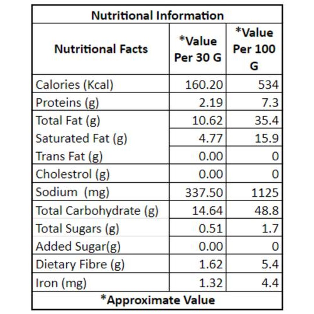Multigrain (Quinoa Flour, Gram Flour, Black Gram Flour, Oats), Refined Palm olein Oil, Tapioca Starch, Spices & Condiments (Dry Mango Powder, Pudina Flavour, Tomato Flavour, Black Salt, Iodised Salt, Red Chilli Powder, Sugar)