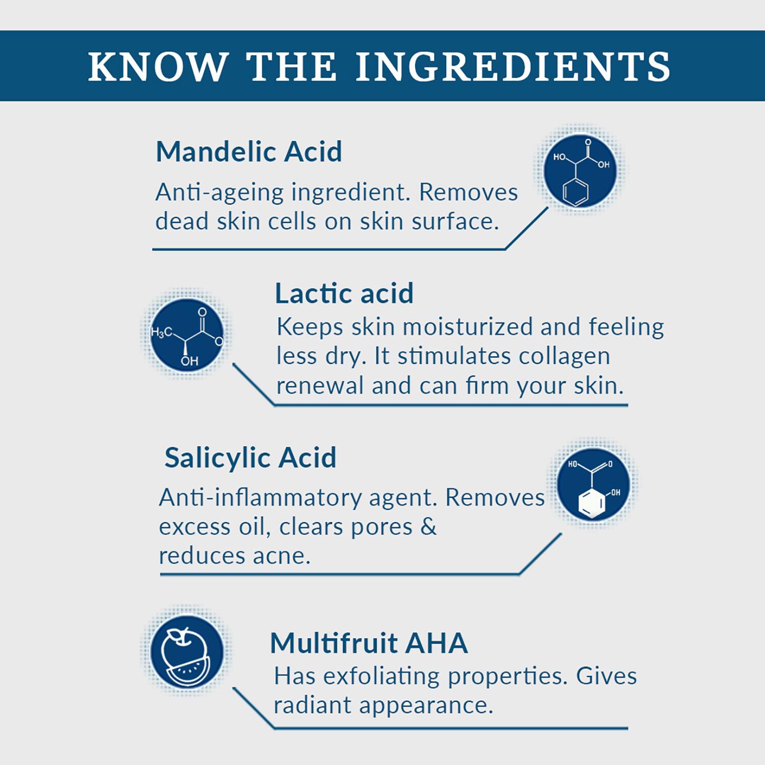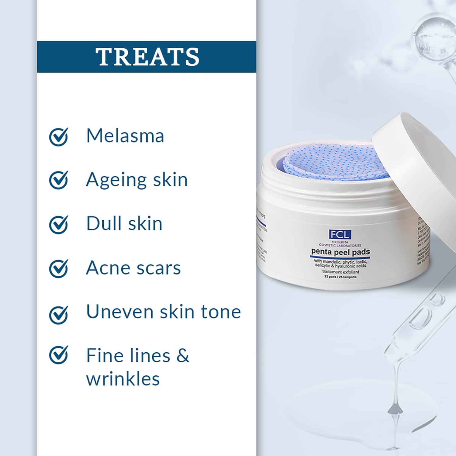 An innovative refining peel treatment, which gently removes the dead cells and promotes healthy cellular turnover to smooth texture and reduce the appearance of fine lines and wrinkles. The single use pads can be easily used at home. KEY INGREDIENTS Mandelic acid Lactic acid Salicylic acid Phytic acid Hyaluronic Acid Multifruit BSC Syricalm INDICATIONS Uneven skin tone Melasma & hyperpigmentation Anti-ageing & skin rejuvenation Post procedure maintenance therapy Can also be recommended as a home care treatment between peel sittings to enhance the outcomes of peeling. DIRECTIONS FOR USE Twice weekly, sweep single-use pad over clean, dry skin avoiding eyes and lips. Relax for 10 - 20 minutes, then rinse face thoroughly with cool water. Some slight tingling may occur, follow with high-protection sunscreen in the morning. Why We Are Different? Resurfaces & smoothens the skin Gives a radiance glow Reduce the appearance of fine lines and wrinkles. Diminishes discolouration and dark spots Easy to use at home Enhances the outcomes of skin proceduresKey Features & BenefitsINNOVATIVE REFINING PEEL TREATMENT: Gently removes the dead cells and promotes healthy cellular turnover to smooth texture and reduce the appearance of fine lines and wrinkles, helps to prevent blackheads and shrink poresSAFE & EASY PEELING: FCL has introduced the concept of peeling pads, which is a home care product to fulfil the exfoliate needs of the skin that is safe and easy to use at home. KEY INGREDIENTS: Mandelic acid, phytic acid, lactic acid, multifruit AHA, salicylic acid, hyaluronic acid, titanium dioxide. WHEN TO USE: For best results apply twice a week. Can be applied as a mini peel between your peeling or laser sittings.HOW TO USE: Sweep single-use pad over clean- dry skin avoiding eyes and lips. Relax for 10 - 20 minutes, and then rinse your face thoroughly with cool water. Slight tingling may occur, follow with a high-protection sunscreen in the morning.Key Ingredients:Hyaluronic acid: Combats the skin drynessMandelic acid: Accelerates cell turnover in the skinLactic acid: Keeps the skin moisturizedAll Ingredients:Aqua, Mandelic Acid, Ethoxydiglycol, Aqua, Phragmites Communis Extract, Poria Cocos Extract, Lactic Acid, Water, Vaccinium Myrtillus Fruit Extract, Saccharum Officinarum (Sugar Cane) Extract, Acer Saccharum (Sugar Maple) Extract, Citrus Aurantium Dulcis (Orange) Fruit Extract, Citrus Limon (Lemon) Fruit Extract, Propanediol, Salicylic Acid, Citrus Grandis (Grapefruit) Seed Extract, Phytic Acid, Arginine Hcl, Sodium Hyaluronate, Xanthan Gum, Alpha Arbutin.How to Use:Sweep the single-use face pad gently over your dry, cleansed skin while avoiding the eyes and lips. Take a 10-20 minute relaxation break, and then rinse your face with cold water. Don't forget to follow it up with sunscreen during the morning time.About the Brand:Founded in 2006, Fixderma Cosmetic Laboratories is an innovative cosmeceutical company with a mission to improve people's skin health. Their skincare philosophy is based on three main pillars, i.e., prevent, protect, and correct. Fixderma has developed cutting-edge products with rich formulations, each consisting of clinically proven active ingredients that bolster skincare efficacy. Also, all their products are tested by dermatologists to ensure proper effectiveness towards any skin problem without any compromise.