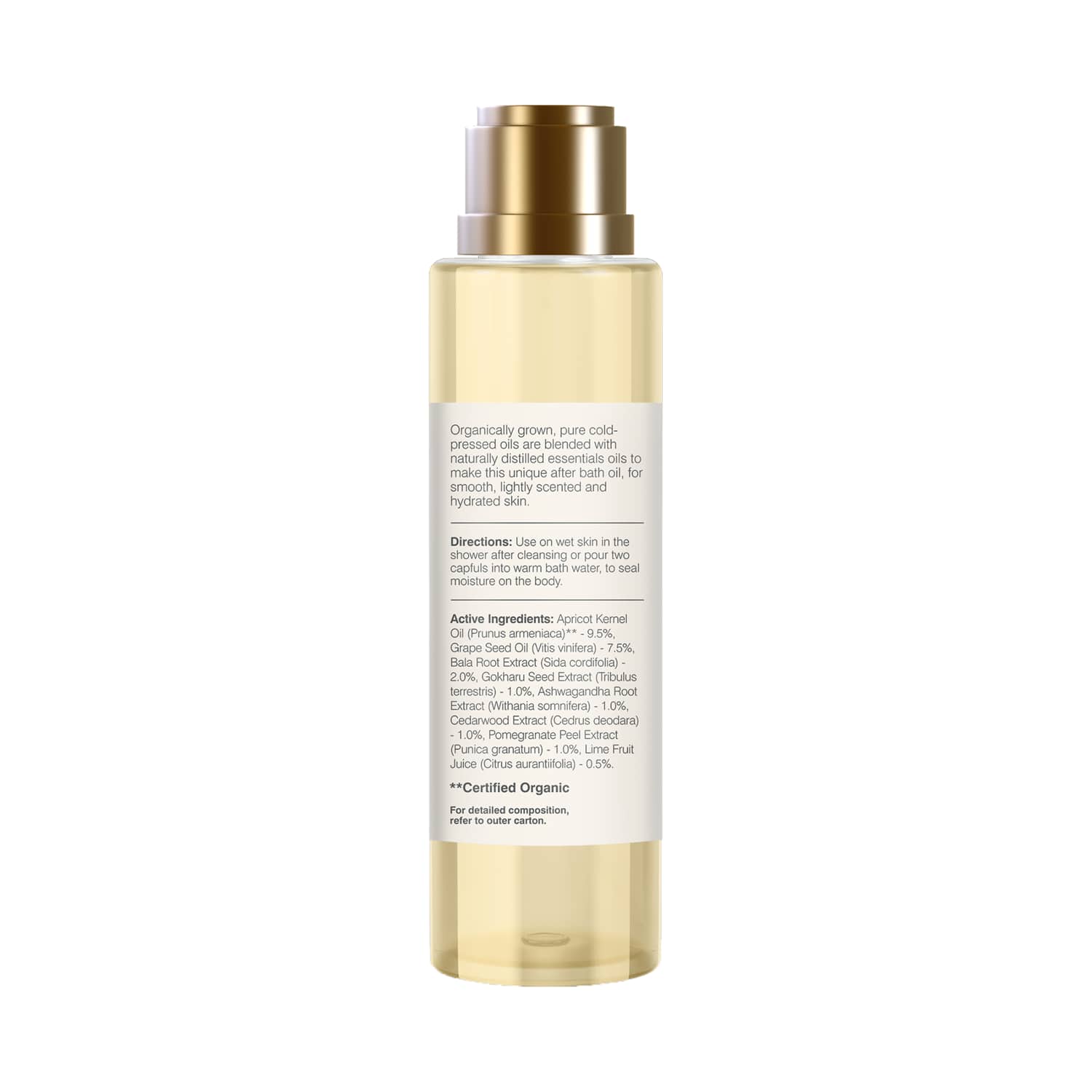 Experience silky-soft skin with the Forest Essentials Iced Pomegranate & Kerala Lime After Bath Oil (130ml). This conditioning after-bath oil is infused with Kerala lime and pomegranate oil to soothe and tone the skin. Also, the Forest Essentials after-bath oil contains sunflower oil, apricot oil, and sweet almond oil to deeply moisturize the skin and prevent signs of aging.Key Features & Benefits:Infused with Kerala lime and pomegranate oil to soothe and tone the skinEnriched with apricot oil, sweet almond oil, and sunflower oil to moisturize the skin and add a natural glow to the skinContains Nargis flower to leave the skin lightly scentedFree from chemicals, parabens, and petrochemicals to ensure safe useKey Ingredients:Kerala lime, vitamin C, and pomegranate oil: Soothe and tone the skinApricot oil, sunflower oil, and sweet almond oil: Moisturize the skin and add a natural glow to the skinAll Ingredients:Apricot Kernel Oil (Prunus Armeniaca) - 9.5%, Grape Seed Oil(Vitis Vinifera) - 7.5%, Bala Root Extract(Sida Cordifolia) - 2.0%, Gokharu Seed Extract (Tribulus Terrestris) - 1.0%,Ashwagandha Extract (Withania Somnifera) - 1.0%, Cedarwood Extract(Cedrus Deodara) - 1.0%, Pomegranate Extract (Punica Granatum) - 1.0%, Lime Juice (Citrus Aurantiifolia) - 0.5%. Base Contains Sweet Almond Oil(Prunus Amygdalus Dulcis), Avocado Oil (Persea Gratissima), Sunflower Seed Oil (Helianthus Annuus), Vitamin E(Tocopheryl Acetate) - Q.S.How to Use:After the bath, pat yourself dry gently with a towel, ensuring your skin is still slightly damp. Next, dispense a small amount of the oil onto the palms and rub them together to warm it up. Then, massage the oil all over your body using gentle circular motions until it gets fully absorbed.About the Brand:Established in 2000 by Mira Kulkarni in New Delhi, India, Forest Essentials is an authentic and traditional skin and hair care brand. They create formulas rooted in the ancient science of Ayurveda. The quintessential beauty brand combines the ancient beauty rituals of Ayurveda with a stylish, modern aesthetic to deliver highly effective products to its consumers. They believe that beauty products made out of living substances, such as plants and their extracts, are balanced by nature and possess the vibratory energy that makes up life. All of their products, from kajals, shampoos, conditioners, body mists, serums, and cheek tints, to baby powder, contain all the purifying, nourishing, and balancing properties necessary to nurture the skin and for eternal beauty.Check out more Forest Essentials Massage Oil options here, or browse through tokocart's full range of Massage Oil from top global brands.You can also explore other products from the world of Forest Essentials here on tokocart.
