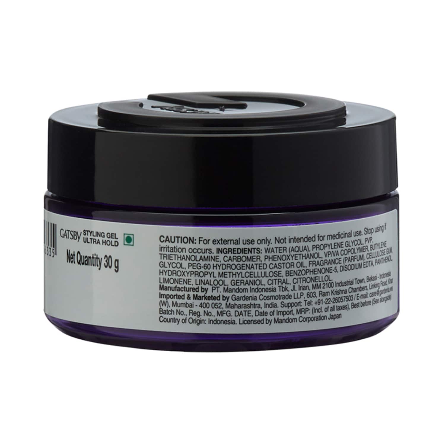 Step into the spotlight with the Gatsby Styling Gel Ultra Hold Gel (30g). This vitamin B5 hair gel holds your hair in place without leaving the hair greasy. It is a nourishing gel that retains moisture in the hair. The Gatsby hair styling gel is also a long-lasting gel that keeps your hair set for long hours. Key Features & Benefits:Infused with vitamin B5 to reduce hair frizzinessHair gel provides a strong hold to the hairstyleVolumizing hair gel adds density to the hair for a healthy lookMatte hair styling gel offers a non-shiny finishFree from oil and alcohol for safe use Key Ingredients:Vitamin B5: Moisturizes the hair All Ingredients:Water(Aqua) Propylene Glycol, Pvp, Triethanolamine, Carbomer, Phenoxyethanol, Vp/Va Copolymer, Btylene Glycol, Peg-60, Hydrogenated Castor Oil, Fragrance(Parfum), Cellulose Gum, Hydroxypropyl Methycellulose, Benzophenone-5, Disodium Edta, Panthenol, Limonene, Linalool, Geraniol, Ciral, Citronellol. How to Use:Take the gel in your palms. Blend it and run your hands through the hair. About the Brand:Gatsby originated in Japan in 1978 and was manufactured by Mandom Corporation, a cosmetics and beauty products company founded in 1927. It is a renowned grooming brand that caters to men's diverse personal, fashion, and styling needs. The brand offers an extensive range of cutting-edge grooming products, including hair styling gels, wax and creams, skin and body care items, beard grooming products, hair colorants, and fragrances, all designed to help you achieve a stylish look within minutes. From its inception, Gatsby has always aimed to empower men worldwide in their pursuit of success, consistently striving to understand and meet consumer preferences.Check out more Gatsby Hair Stylings options here, or browse through tokocart's full range of Hair Stylings from top global brands.You can also explore other products from the world of Gatsby here on tokocart.