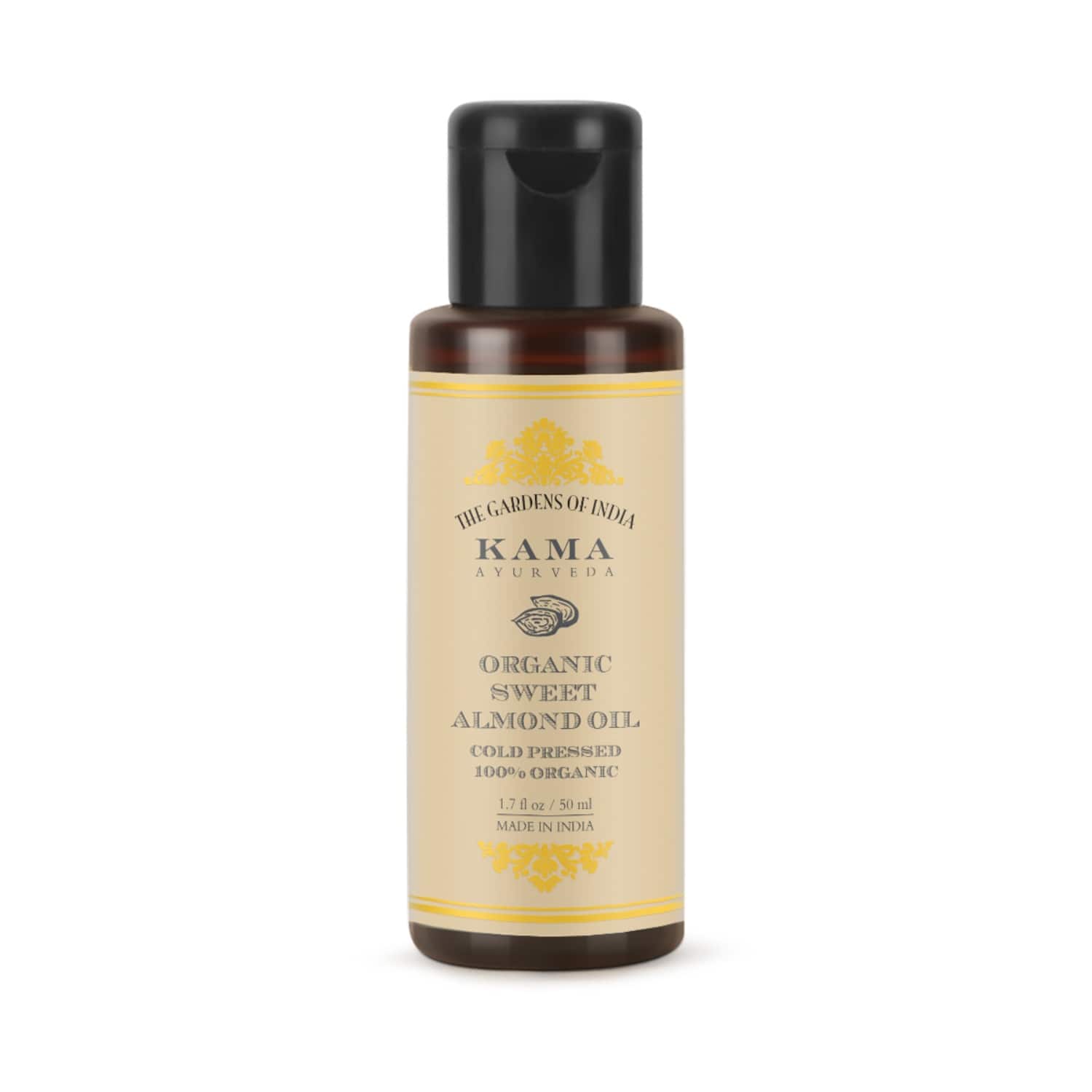 Feel calm and refreshed with the Kama Ayurveda Organic Sweet Almond Oil - (50ml). Infused with the delicate scent of ripe sweet almond tree seeds, this oil gives a hydrating and soothing therapy. It nourishes and rekindles the natural shine of your skin, giving it a healthy glow. In addition, the essential oil helps in smoothening hair cuticles, aids in preventing hair loss, and gives damaged hair lustre.Key Features & Benefits:Enriched with sweet almond tree seeds for moisturising and hydrating skinNourishes the skin and gives it a natural glowNon-sticky oil evens skin tone and conditions damaged hairPrevents hair loss and smoothens hair cuticlesBeneficial for giving massages to babiesKey Ingredients:Almond oil: Improves skin tone and textureHow to Use:Gently massage the face and body after warming a small amount of the oil in your hands. After 30 minutes, wash with a mild soap or body cleanser to finish the treatment. Next, apply to the scalp for hair and massage it gently from root to tip. After 20 minutes, wash the treated area with warm water and a mild hair cleanser. It is suitable for all skin and hair types and can be used from head to toe.About the Brand:Launched in 2002, Kama Ayurveda has been a sought-after Indian brand providing beauty and wellness products all over the globe. Initially, they introduced 9 Ayurvedic treatments in collaboration with the well-known Arya Vaidya Pharmacy from Coimbatore, Tamil Nadu. Over the years, Kama Ayurveda has grown and spread authentic Ayurvedic treatments worldwide. All their beauty and wellness products are manufactured with natural ingredients and efficacious formulations to provide long-term skincare results to the customers.