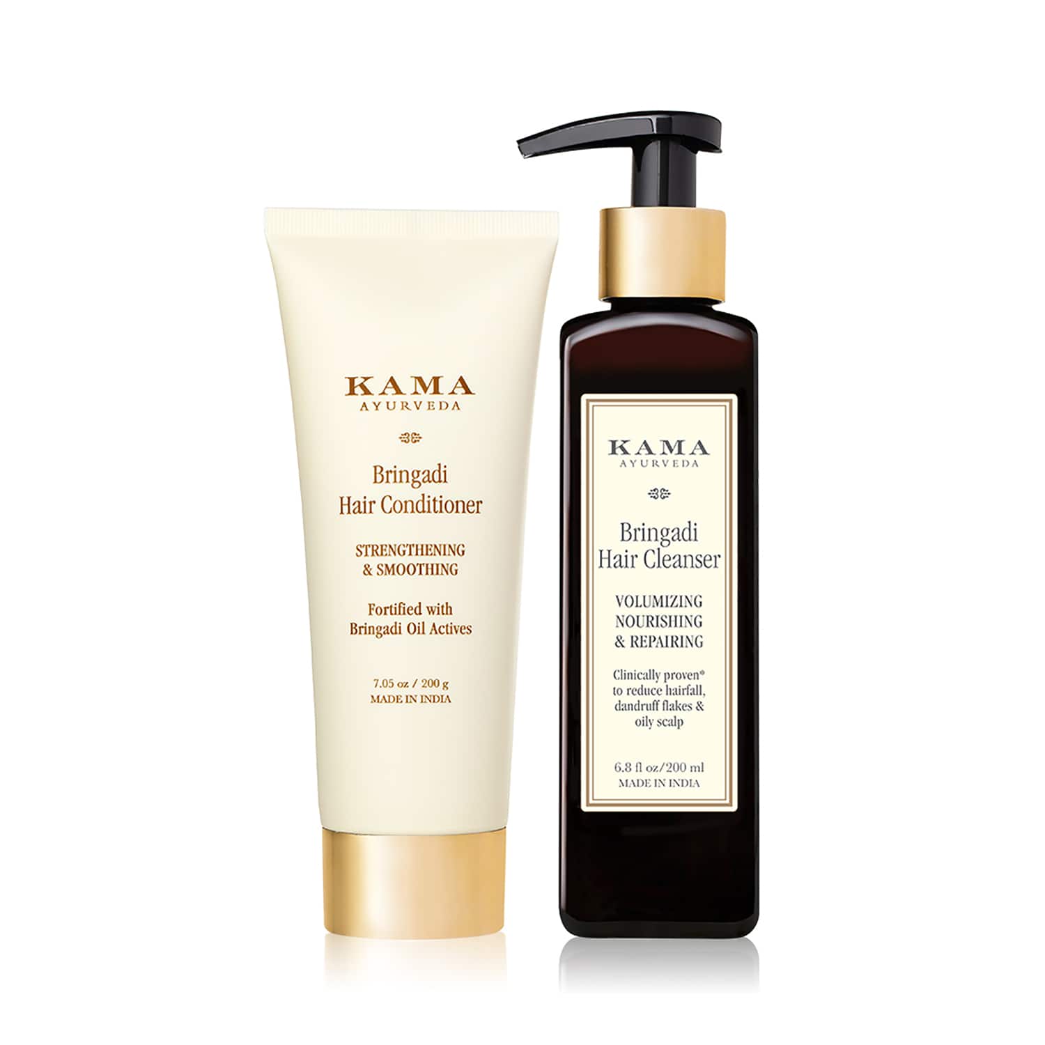 Kama Ayurveda Shampoo & Conditioner ComboPowered by Kama Ayurveda’s Bringadi Intensive Hair Oil for healthy scalp & hair , this lightweight, refreshing shampoo? helps cleanse and detox hair from root to tip. With ingredients like Bhringraj that promotes hair growth, it’s also boosted with vegan soy protein that strengthens and softens hair. Sulphate & Paraben Free. Suitable for all hairtypes.Kama Ayurveda Bringadi Hair Cleanser (200ml)