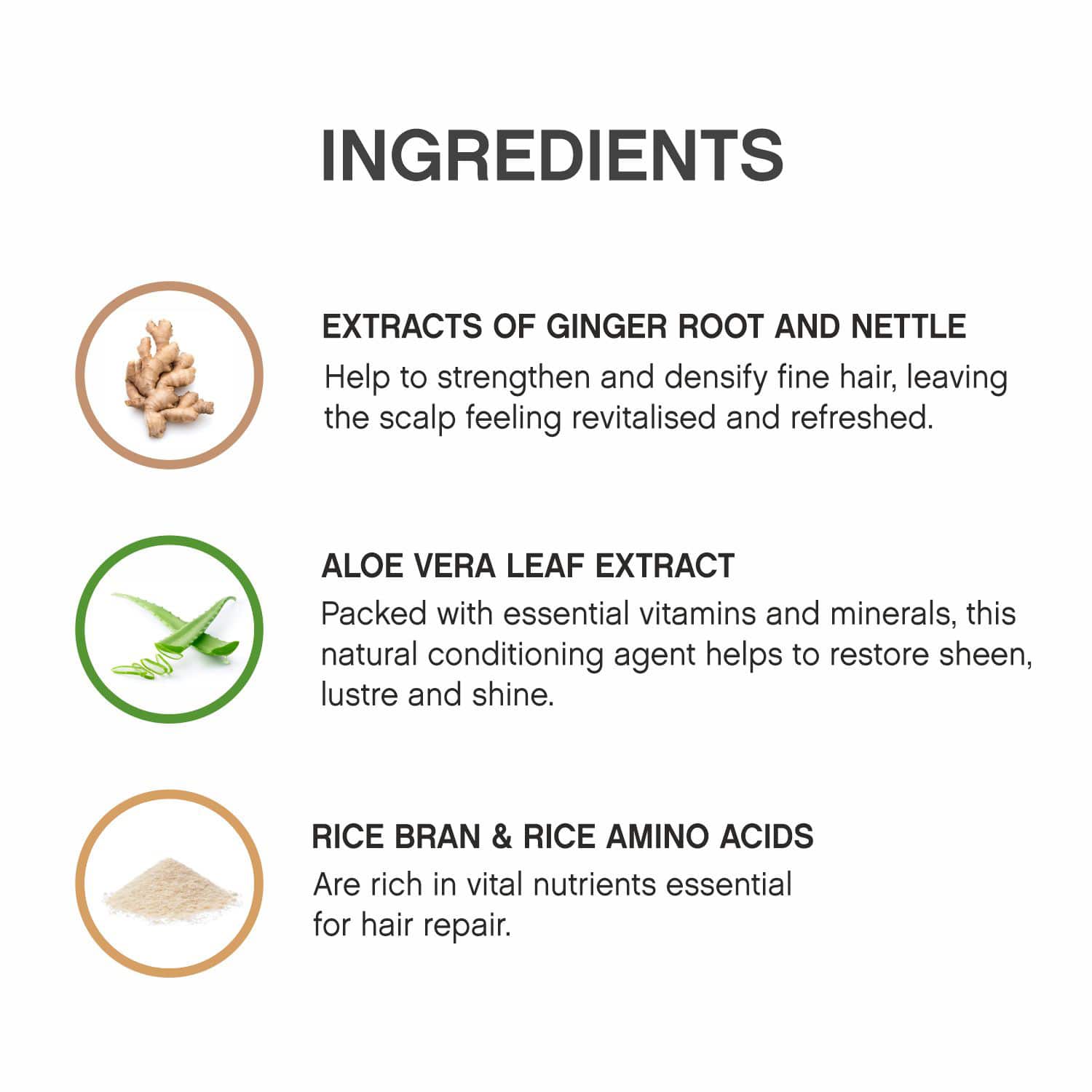 All Ingredients:Water (Aqua) (Eau), Sodium Methyl 2-Sulfolaurate, Sodium Cocoyl Isethionate, Cocamidopropyl Hydroxysultaine, Disodium 2-Sulfolaurate, Peg-2 Cocamide, Cocamidopropyl Betaine, Peg-150 Distearate, Panthenol, Zingiber Officinale (Ginger) Root Extract, Urtica Dioica (Nettle) Extract, Oleanolic Acid, Aesculus Hippocastanum (Horse Chestnut) Seed Extract, Euterpe Oleracea Fruit Extract, Bambusa Vulgaris Leaf/Stem Extract, Oryza Sativa (Rice) Bran Oil, Silk Amino Acids, Rice Amino Acids, Keratin Amino Acids, Aloe Barbadensis Leaf Juice, Creatine, Apigenin, Biotinoyl Tripeptide-1, Lactic Acid, Zinc Picolinate, Glycerin, Isopropyl Alcohol, Butylene Glycol, Propanediol, Butyloctanol, Dicetyldimonium Chloride, Silicone Quaternium-16, Ppg-26-Buteth-26, Glycol Distearate, Guar Hydroxypropyltrimonium Chloride, Undeceth-11, Peg-120 Methyl Glucose Trioleate, Steareth-4, Peg-40 Hydrogenated Castor Oil, Undeceth-5, Polyquaternium-7, Polyquaternium-10, Disodium Edta, Trisodium Hedta, Phenoxyethanol, Ethylhexylglycerin, Chlorphenesin, Sorbic Acid, Benzoic Acid, Potassium Sorbate, Sodium Benzoate, Lactobacillus Ferment, Leuconostoc/Radish Root Ferment Filtrate, Iodopropynyl Butylcarbamate, Citric Acid, Fragrance (Parfum), Benzyl Benzoate, Benzyl Salicylate, Hydroxycitronellal