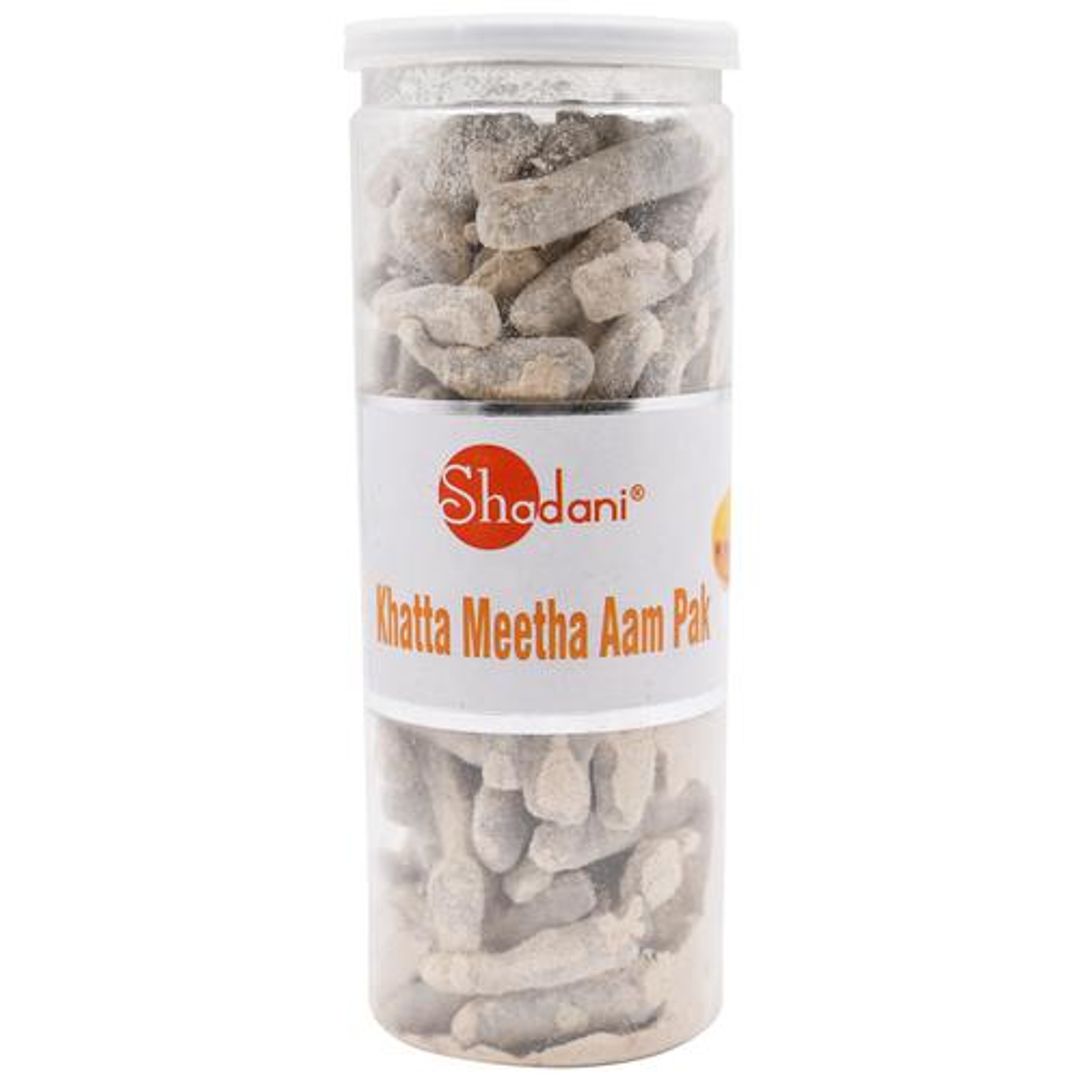 Shadani Khatta Meetha Aampak is a digestive product, which offers a unique taste of chatpata dried mango. It is made with organic herbs, spices and freshly dried mango. Available in sweet and sour taste, this product is prepared under hygienic conditions to ensure its purity and freshness. Shadani is well known in India for its product offerings like Fennel - Mouth Freshener, Digestive & Candy Products.