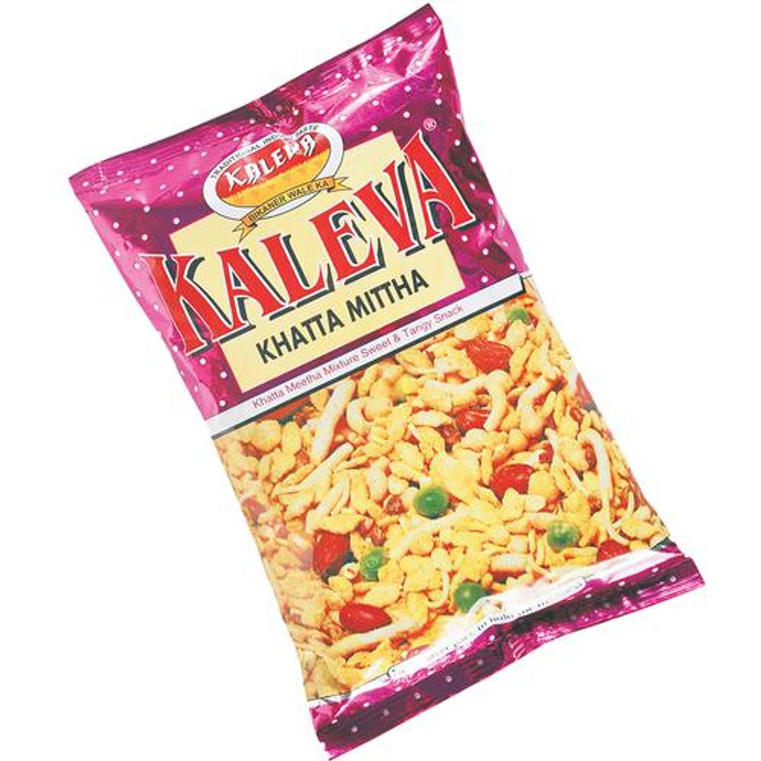 Looking out for some sweet and tangy snack? Why try any other snack when you have Kaleva around. Comes with a traditional Indian taste, this Khatta Meetha namkeen is a fun mixture with a sweet and tangy flavour. A versatile item to pair with your early breakfast or evening snack is a convenient product to carry and comes in a pocket-friendly range. What are you waiting for then? Grasp a packet of Kaleva Khatta Meetha and give your taste buds a tangy kick.