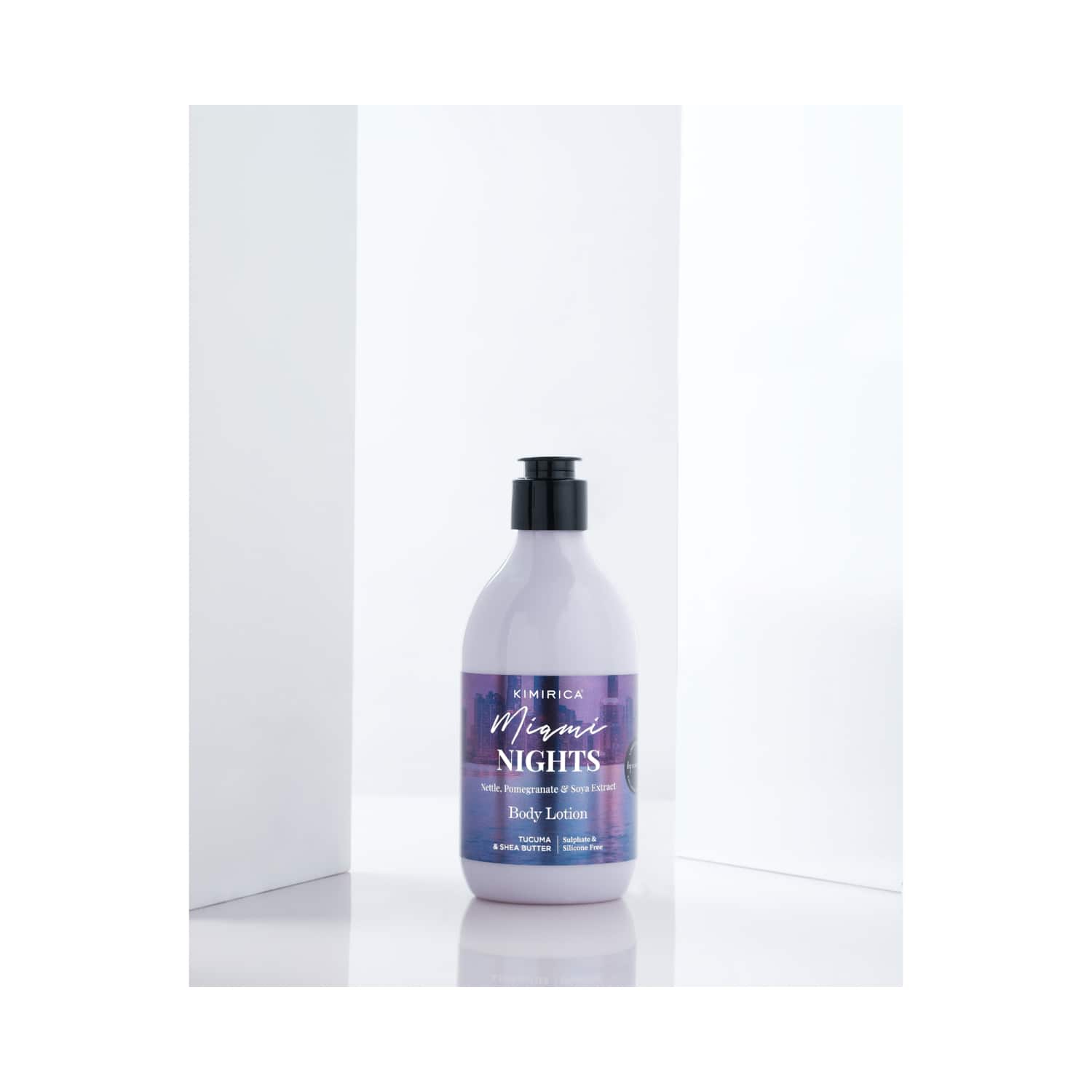 Treat yourself to some pampering with the Kimirica Miami Nights Summer Body Lotion (300ml). This lightweight lotion contains nettle, pomegranate, and soybean extracts to combat dry skin conditions while providing long-lasting moisture. It is pH balanced to maintain skin health and is free of silicones and sulfates that can cause further dryness. Plus, this Kimirica body lotion also features a refreshing fragrance that leaves your skin feeling soft and silky without being greasy. Top notes:Violet Flower, Iris, and Mandarin Heart notes:Plum and White Flowers Base notes:Musk and SandalwoodKey Features & Benefits:Contains nettle, pomegranate, shea butter, vitamin E, and soybean extracts for long-lasting moisturizationLightweight texture do not feel greasy on skinpH balanced to keep skin healthySilicon and sulfate-free formula suitable for all skin typesKey Ingredients:Nettle, pomegranate, and soybean extracts: Moisturize and nourish skinAll Ingredients:Nettle Extract, Pomegranate Extract, Soybean Extract, Shea Butter, Coconut Oil, Vitamin EHow to Use:Wash your skin. Take a bit of the lotion and put it on your skin. After that, massage well for increased hydration. Apply twice daily for the best results.About the Brand:Co-founded by sisters Kimi and Rica in 2012, Kimirica is a beauty and skincare brand from India. It offers a wide variety of products, from hair care and face care to gift sets. The brand aims to promote the message of self-care and self-love through its affordable offerings and partnership with celebrities like Kiara Advani. Each product of Kimirica uses natural ingredients or plant actives and is developed by experts after thorough research and quality checks to ensure effective and safe use.Check out more Kimirica Body Lotions & Moisturisers options here, or browse through tokocart's full range of Body Lotions & Moisturisers from top global brands.You can also explore other products from the world of Kimirica here on tokocart.