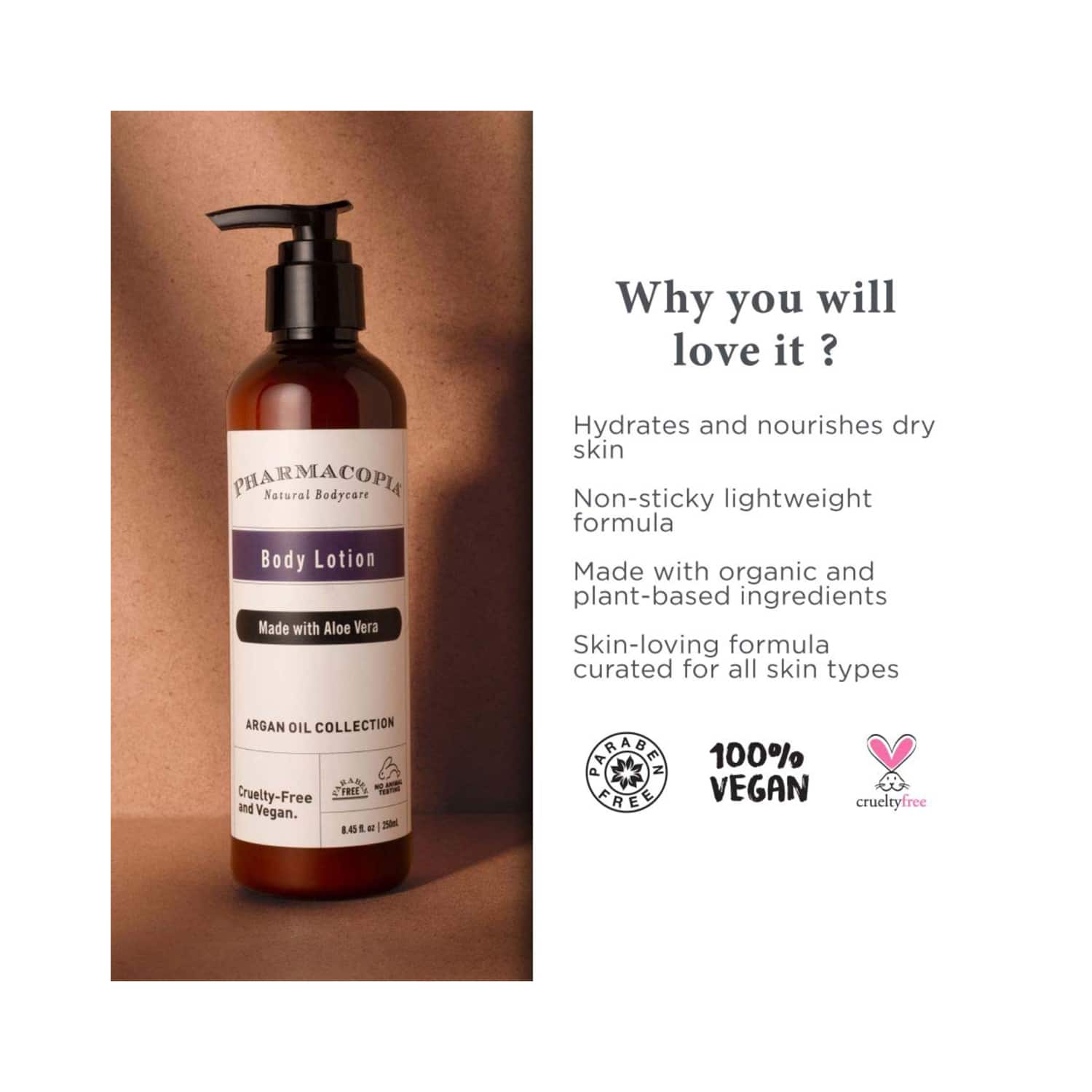 Kimirica Pharmacopia Argan Oil & Aloe Vera Organic Body Lotion Moisturizer for Dry Skin (250 ml)