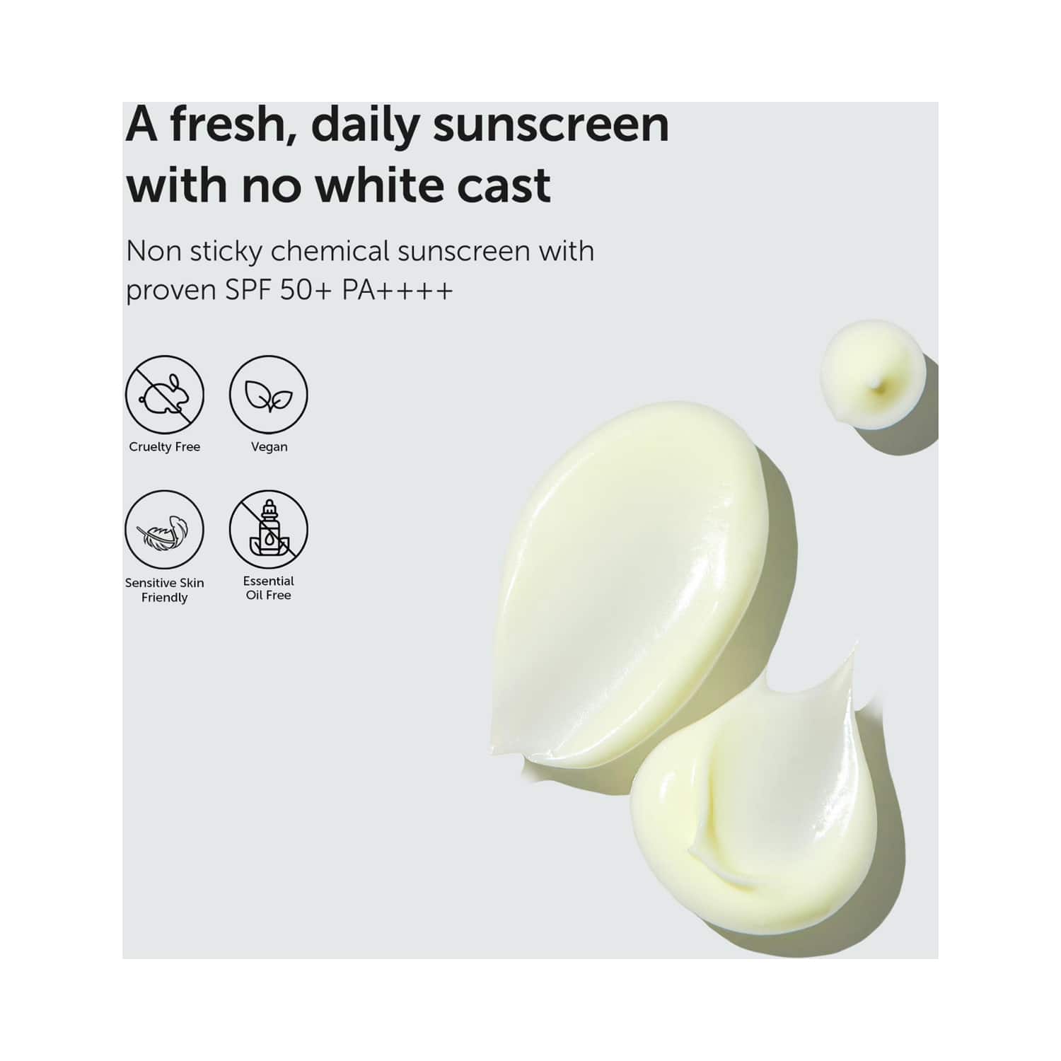 Key Features & Benefits:Infused with SPF 50 for added protection against UV raysNon-sticky sunscreen gel does not leave the skin greasyLeaves no white marks for flawless makeup applicationCruelty-free sunscreen gel ensures safe use
