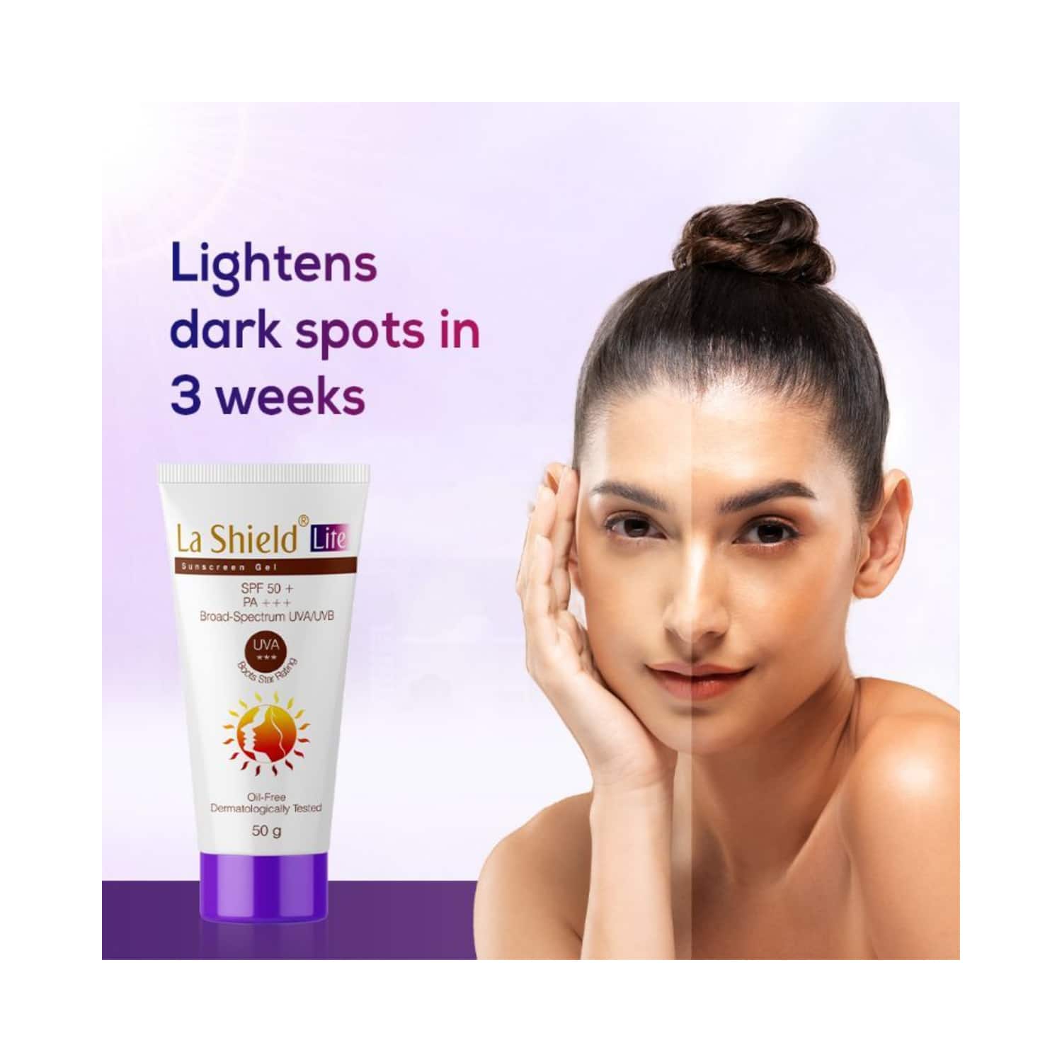 Make your skin look perfect with the La Shield Lite SPF 50+ & PA+++ Sunscreen Gel (50g). It helps to protect your skin from harmful UV rays by deflecting them. This La Shield sunscreen reduces skin blemishes and lightens dark spots in three weeks. The waterproof sunscreen stays for long hours without wearing out. Also, this paraben-free sunscreen is made free of harmful chemicals for safe use on your skin.Key Features & Benefits:Shields your skin by deflecting harmful UV raysHelps to lighten dark spots in three weeksResistant to sweat and stays intact for long hoursParaben-free formulation for safe use How to Use:Take a little bit of sunscreen on your hand. Dab it over your face and neck in a circular motion for easy absorption of the gel. If you apply makeup later, ensure that you wait five minutes after applying the gel for better absorption.All Ingredients:Octinoxate, Undecylenoyl Phenylalanine [Sepiwhite Msh], Diethylamino Hydroxybenzoyl Hexyl Benzoate) [Uvinul A Plus], Bis-Ethylhexyloxyphenol Methoxyphenyl Triazine [Tinosorb S], Diethylhexyl Butamide tokocartzone [Uvasorb Heb], Titanium Dioxide (And) Dimethicone (And) Silica [Parsol Tx]About the Brand:Founded in 1971, Glenmark Pharmaceuticals is a leading pharmaceutical company from India. The company has turned out into a giant with a wide range of patented drugs and generic medicines under its brand name. Each product from the brand undergoes stringent quality checks to meet International standards. La Shield offers a range of sunscreens developed ideally for Indian conditions by Glenmark.
