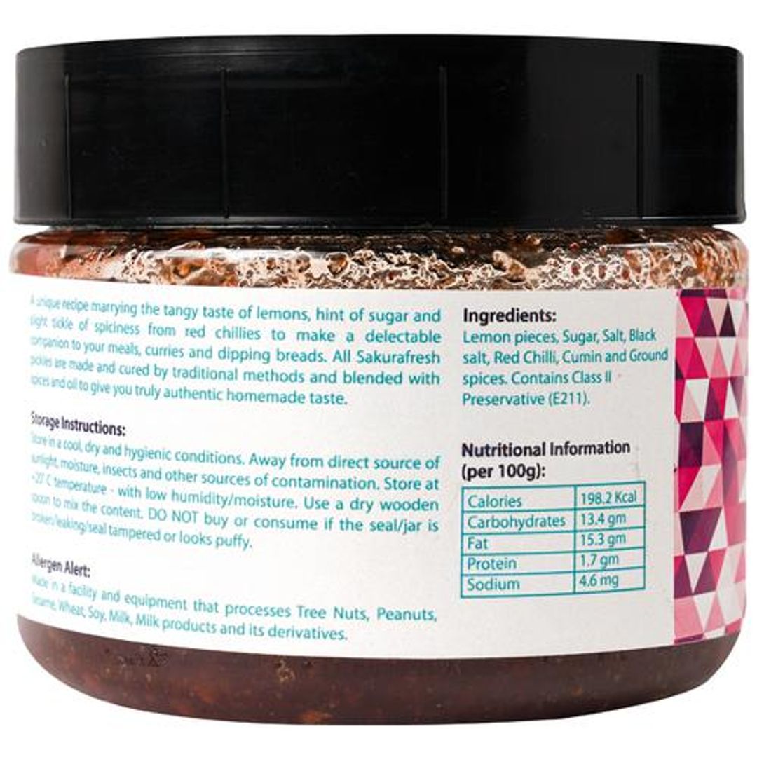A unique recipe marrying the tangy taste of lemons, a hint of sugar and the slight tickle of spiciness from red chilies to make a delectable companion to your meals, curries and dipping bread. All Sakurafresh pickles are made and cured by traditional methods and blended with spices and oil to give you a truly authentic homemade taste.