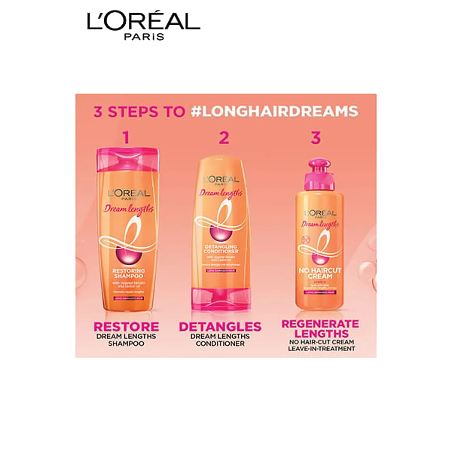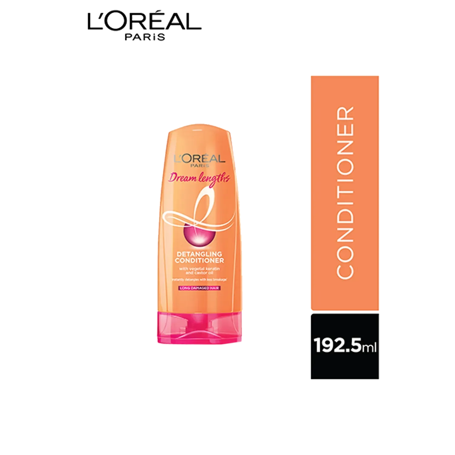 Keep your tresses long and healthy with the L'Oreal Paris Dream Lengths Detangling Conditioner. Imbued with vegetal keratin and Vitamin B3 and B5, this hair conditioner can lock damaged tips and castor oil ensures that there is no hair breakage while promoting healthy growth for long and strong hair. Ideal for dry and damaged hair, this hair conditioner can detangle long hair, leaving it smooth while causing minimal breakage.Key Features & Benefits:Imbued with vegetal keratin and Vitamin B3 and B5 to keep your long hair healthy and smoothCastor oil promotes healthy growth for long and strong hairDetangles your hair gently for smooth, soft, and shiny hairPrevents hair breakage to enhance hair growthStyle, twist, and tie your hairHow to Use:Apply to wet hair from lengths to tips after shampooing. Leave the conditioner on for only 1 minute and rinse thoroughly.About the Brand:With more than 40 years of pioneering scienti?c research heritage, L'Oreal Paris is proud to offer a stringent selection of the most advanced beauty care with proven ef?cacy and safety to its consumers. Committed to quality, scientific excellence, and permanent innovation, we are proud to be the world's leading cosmetics brand that makes the best of beauty available to all. With L'Oreal Paris, beauty is synonymous with luxury and accessibility, for fans everywhere to make their own. L'Oreal Paris brand encompasses the four major beauty categories - hair colour, cosmetics, hair care, and skin care - and includes such well-known brands as Excellence Creme, Total Repair 5 hair care, Youth Code, Fall Repair, Revitalift, Volume Million Lashes Mascara, Colour Riche lipsticks, Superliners and True Match foundations among many others.Check out more L'Oreal Paris Conditioner options here, or browse through tokocart's full range of Conditioner from top global brands.You can also explore other products from the world of L'Oreal Paris here on tokocart.