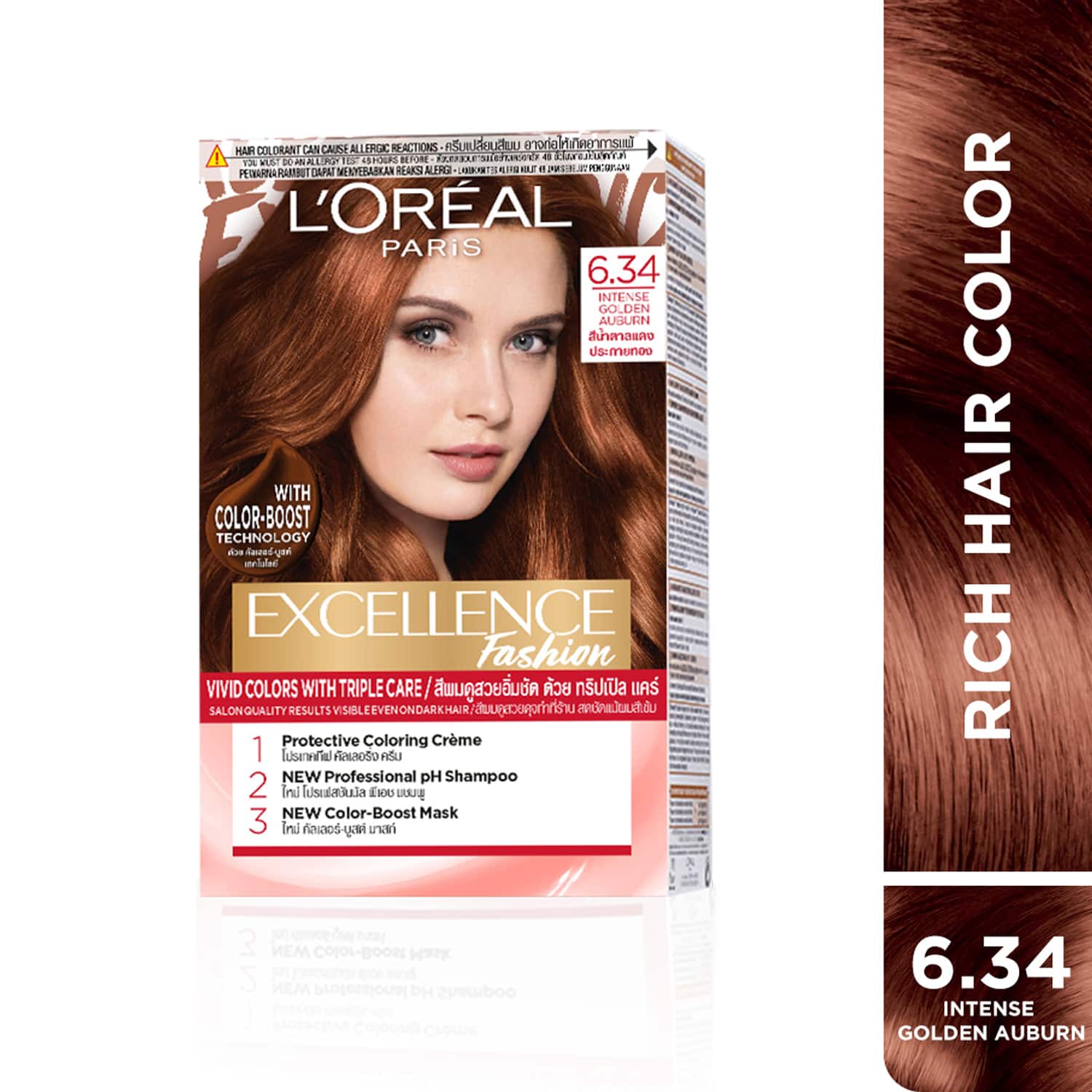 L'Oreal Paris Excellence Fashion Highlights Hair Color, 6.34 Intense Golden Auburn