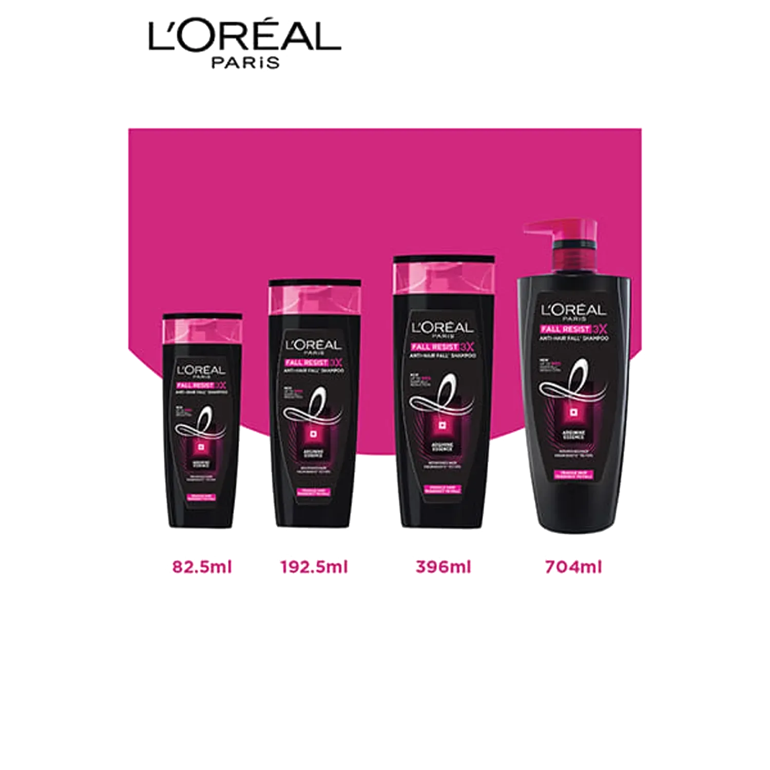 Get rid of hair fall in no time with the effective L'Oreal Paris Fall Resist 3X Anti-Hairfall Shampoo. With its triple anti-hair fall action, this shampoo leaves your hair looking healthy, strong, and luscious. Its specially designed formula can detangle your hair easily and prevent hair fall.Key Features & Benefits:Triple anti-hair fall action prevents hair fall and strengths your hairProvides nourishment to the hair rootRestructures hair fibre to keep your hair strongStronger hair growth from root to tipKey Ingredients:Arginine Essence: Arginine is an amino acid naturally produced by our body. It is used for its anti-aging and moisturizing properties in skin care products to promote cellular regeneration and leave the skin smoother and more elastic. Arginine can also mask the odors of other ingredients.All Ingredients:Aqua / Water, Sodium Laureth Sulphate, Dimethicone, Coco-Betaine, Sodium Chloride, Glycol Distearate, Guar Hydroxypropyltrimonium Chloride, Cocamide Mipa, Sodium Benzoate, Sodium Cocoate, Sodium Hydroxide, Arginine, Salicylic Acid, Limonene, Linalool, 2-Oleamido-1, 3-Octadecanediol, Carbomer, Methyl Cocoate, Citric Acid, Hexylene Glycol, Hexyl Cinnamal, Parfum/Fragrance (F.I.L C44447/1)About the Brand:With more than 40 years of pioneering scienti?c research heritage, L'Oreal Paris is proud to offer a stringent selection of the most advanced beauty care with proven ef?cacy and safety to its consumers. Committed to quality, scientific excellence, and permanent innovation, we are proud to be the world's leading cosmetics brand that makes the best of beauty available to all. With L'Oreal Paris, beauty is synonymous with luxury and accessibility, for fans everywhere to make their own. L'Oreal Paris brand encompasses the four major beauty categories - hair colour, cosmetics, hair care, and skin care - and includes such well-known brands as Excellence Creme, Total Repair 5 hair care, Youth Code, Fall Repair, Revitalift, Volume Million Lashes Mascara, Colour Riche lipsticks, Superliners and True Match foundations among many others.Check out more L'Oreal Paris Shampoo options here, or browse through tokocart's full range of Shampoo from top global brands.You can also explore other products from the world of L'Oreal Paris here on tokocart.