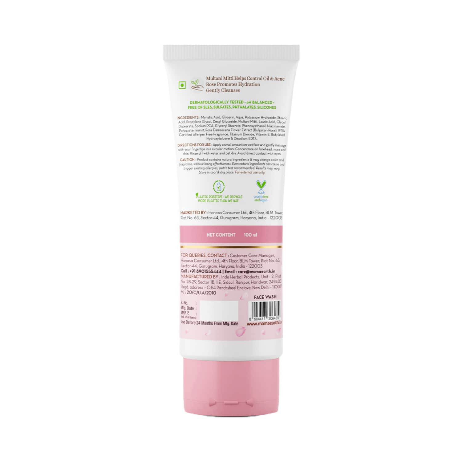 Key Features & Benefits:Formulated with multani mitti to cleanse the skin, remove excess oil, and prevent acneInfused with Bulgarian rose to provide a boost of hydration to the skin and leave it suppleAdded niacinamide evens out the skin tone and controls oil productionCruelty-free formula ensures safe and guilt-free use on all skin types