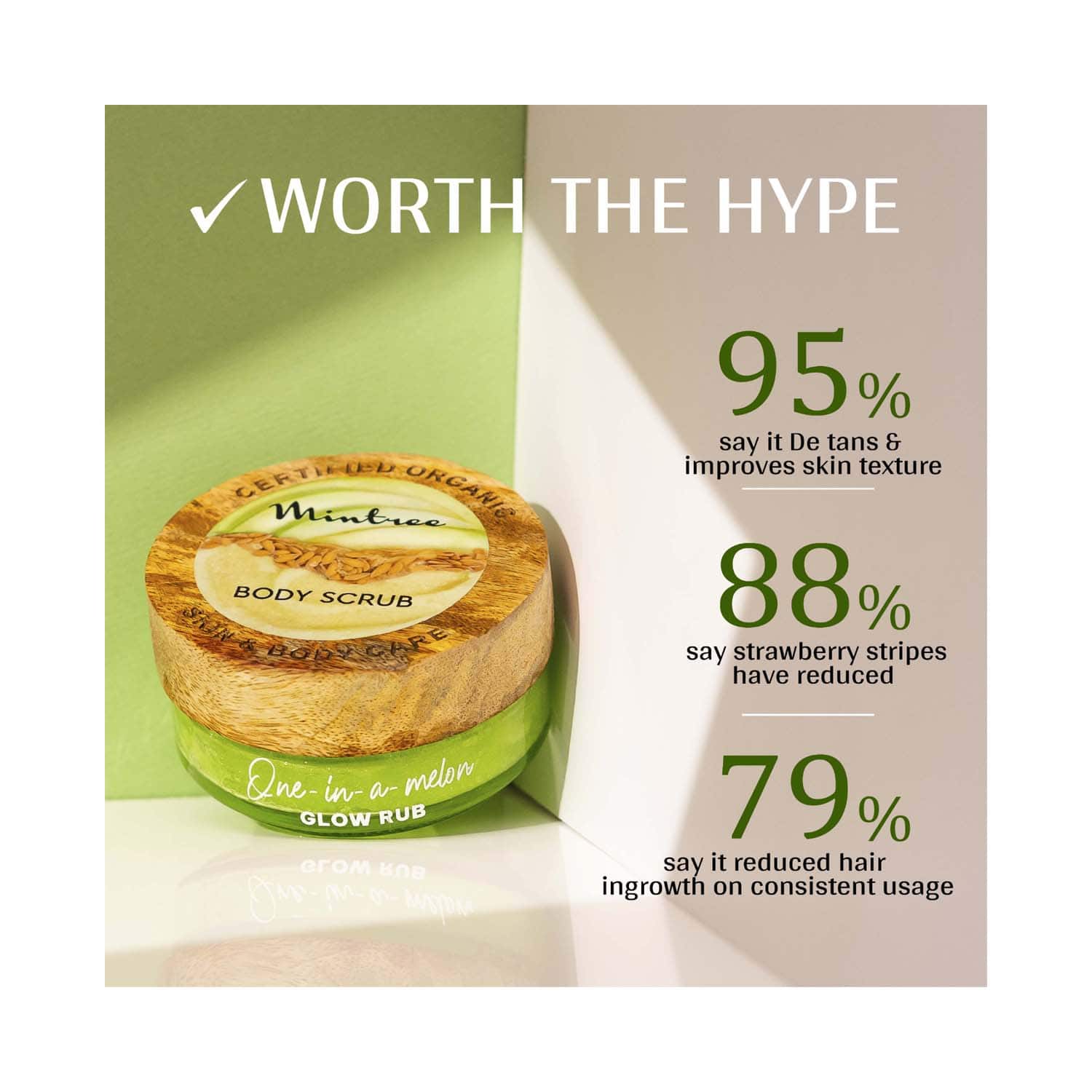 Mintree Certified Organic Melon Sugar Scrub For Exfoliates & Brightens Skin, Removes Tan (150g)