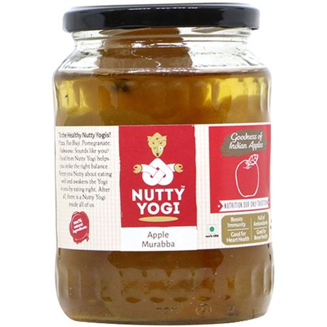 Nutty Yogi Apple Murabba is hygienically processed from best quality apples. It contains apple, sugar, water and other ingredients. It protects from bone diseases like bone inflammation, rheumatism, gout and painful arthritis. It is very healthy, moist and satisfying.