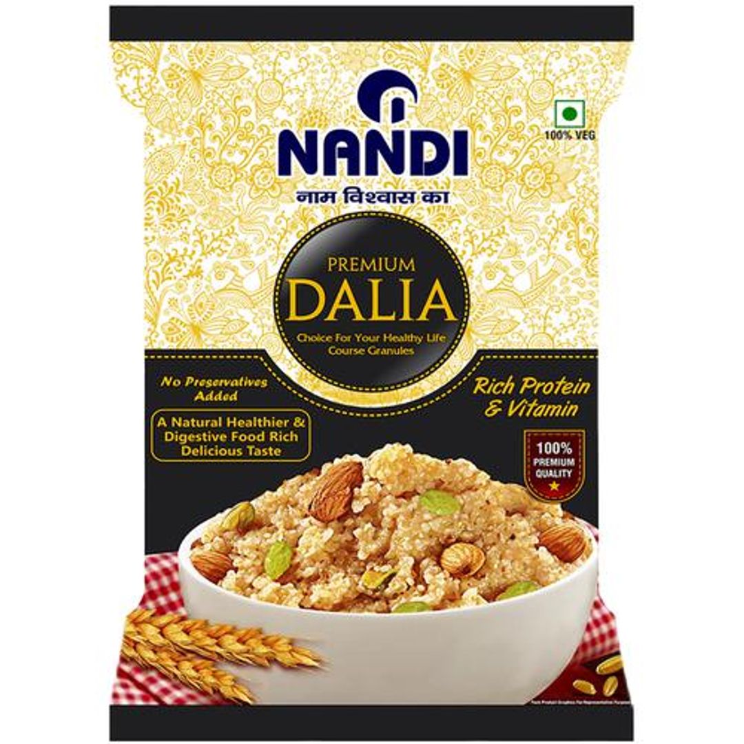 Breakfast: Prepare a comforting breakfast by boiling Dalia with milk or water until it's creamy and cooked to your desired consistency. Add sweeteners like honey, fruits, nuts, and seeds for a nutritious morning meal.